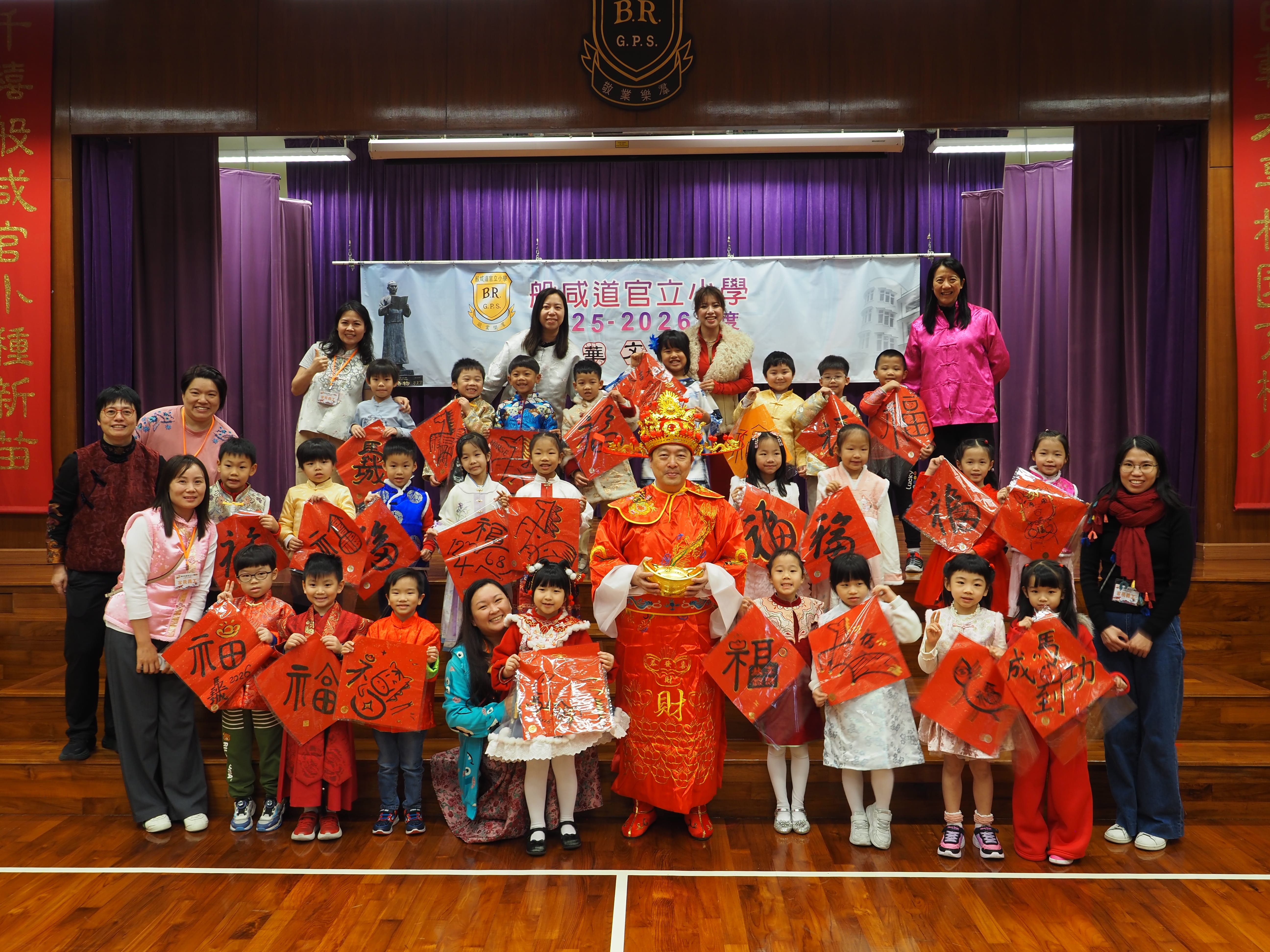 2026 年 2 月 13 日,般咸道官立小學校園洋溢着濃郁的傳統文化氣息,一年一度的中華文化日順利舉行。本次活動以「弘揚中華優秀傳統文化、厚植學生文化自信、凝聚家校同心力量」為宗旨,透過體驗、互動遊戲與演出,讓師生、家長在歡樂中認識中華文化的博大精深,感受傳統節俗與國學智慧的獨特魅力。