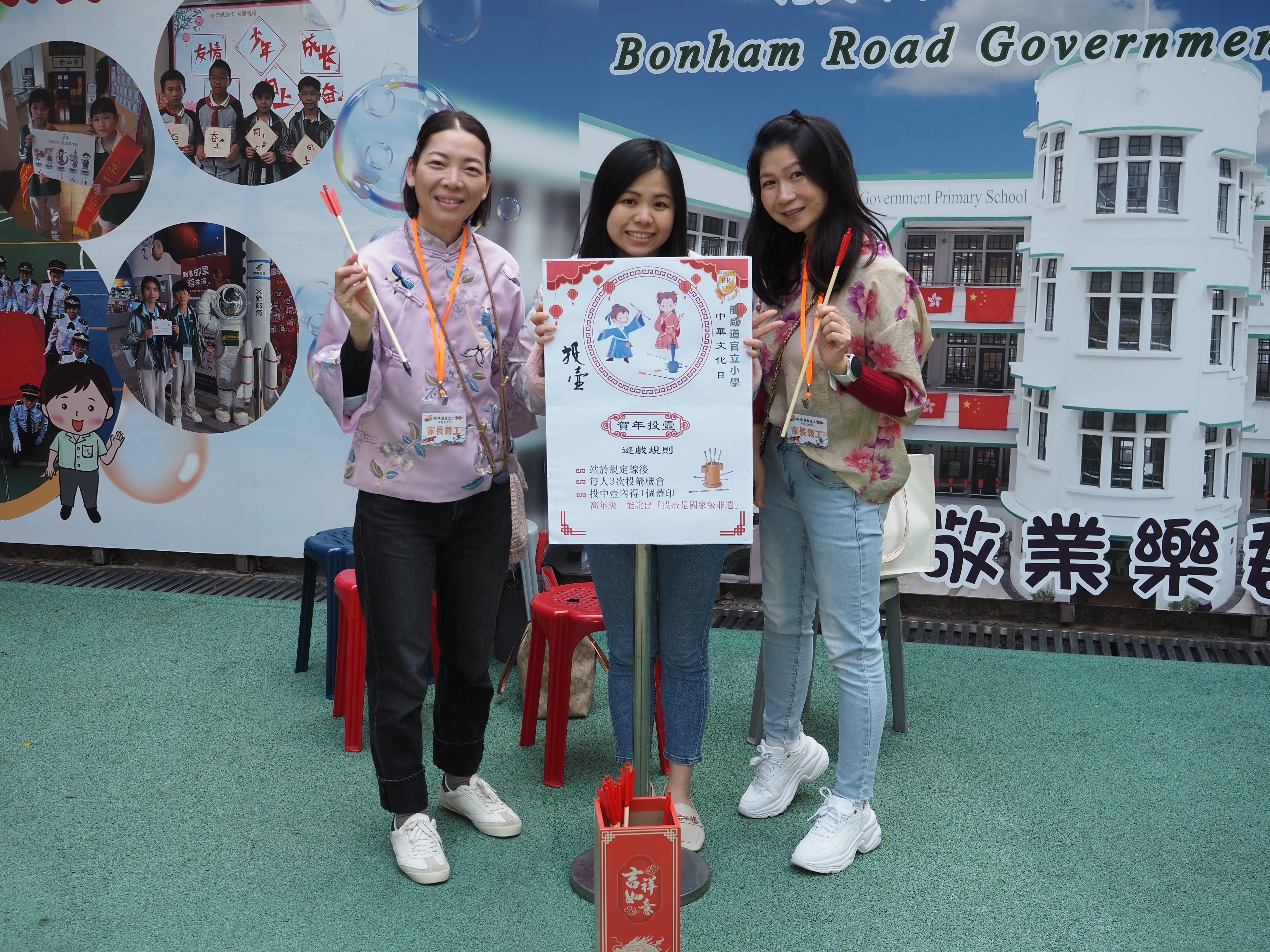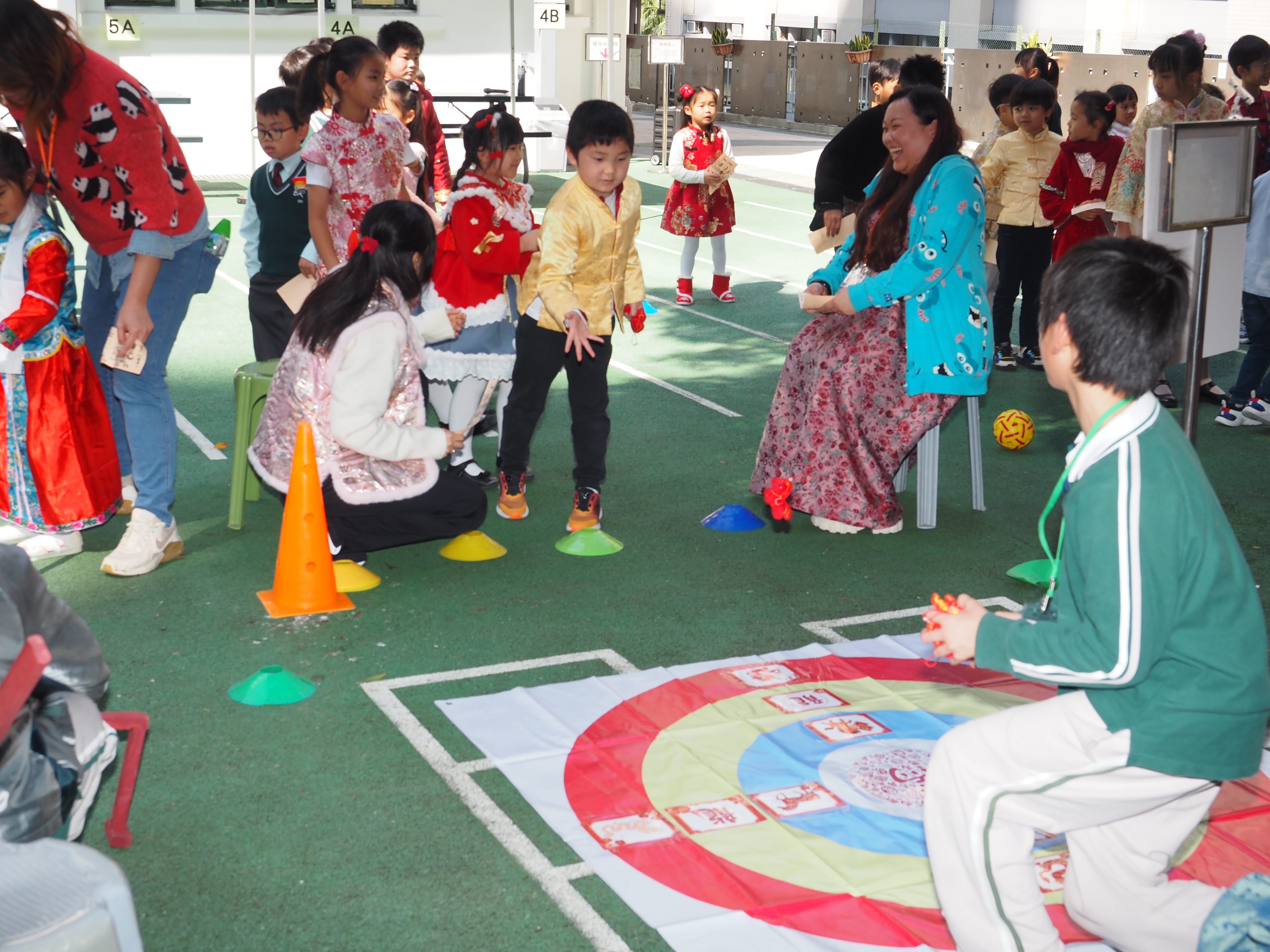 在家長義工與憲法及基本法大使的熱心協助下,同學們踴躍參與各項傳統遊戲:體驗古代高爾夫「捶丸」、認識寓教於樂的「木射」,以釣鉗夾取馬匹玩偶等。同學們在遊戲中認識中國歷史與傳統體育文化,完成任務可收集印章,儲齊印章即可參加扭蛋抽獎,有機會贏取豐富大獎,現場歡笑不斷、樂趣滿滿。