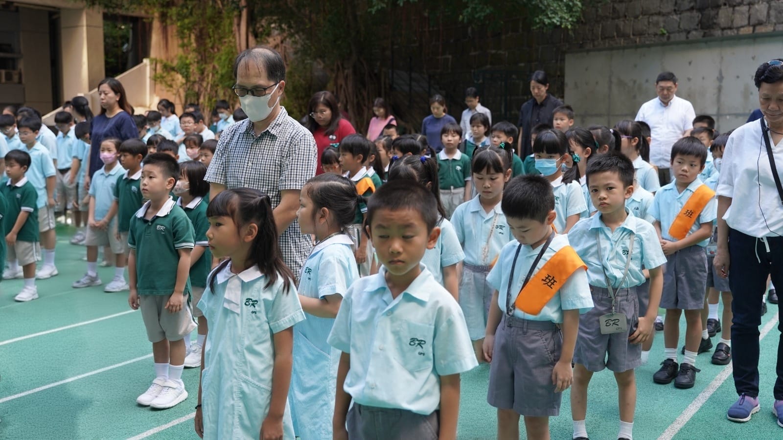 今日(2025年9月18日)上午,般咸道官立小學全體師生齊聚小操場,莊嚴舉行「勿忘9.18 · 銘記歷史 · 珍愛和平」主題升旗儀式,紀念抗日戰爭勝利80周年。