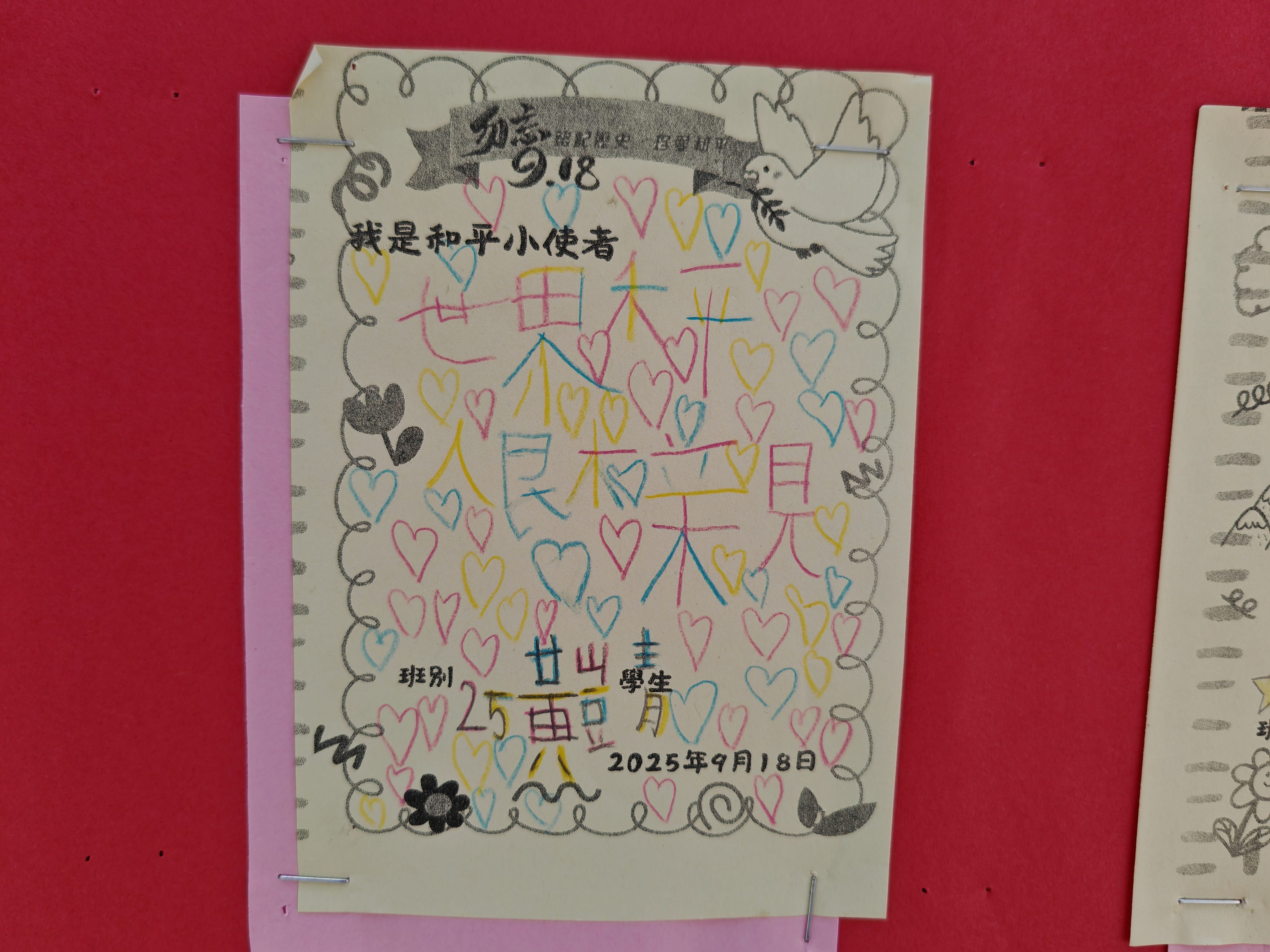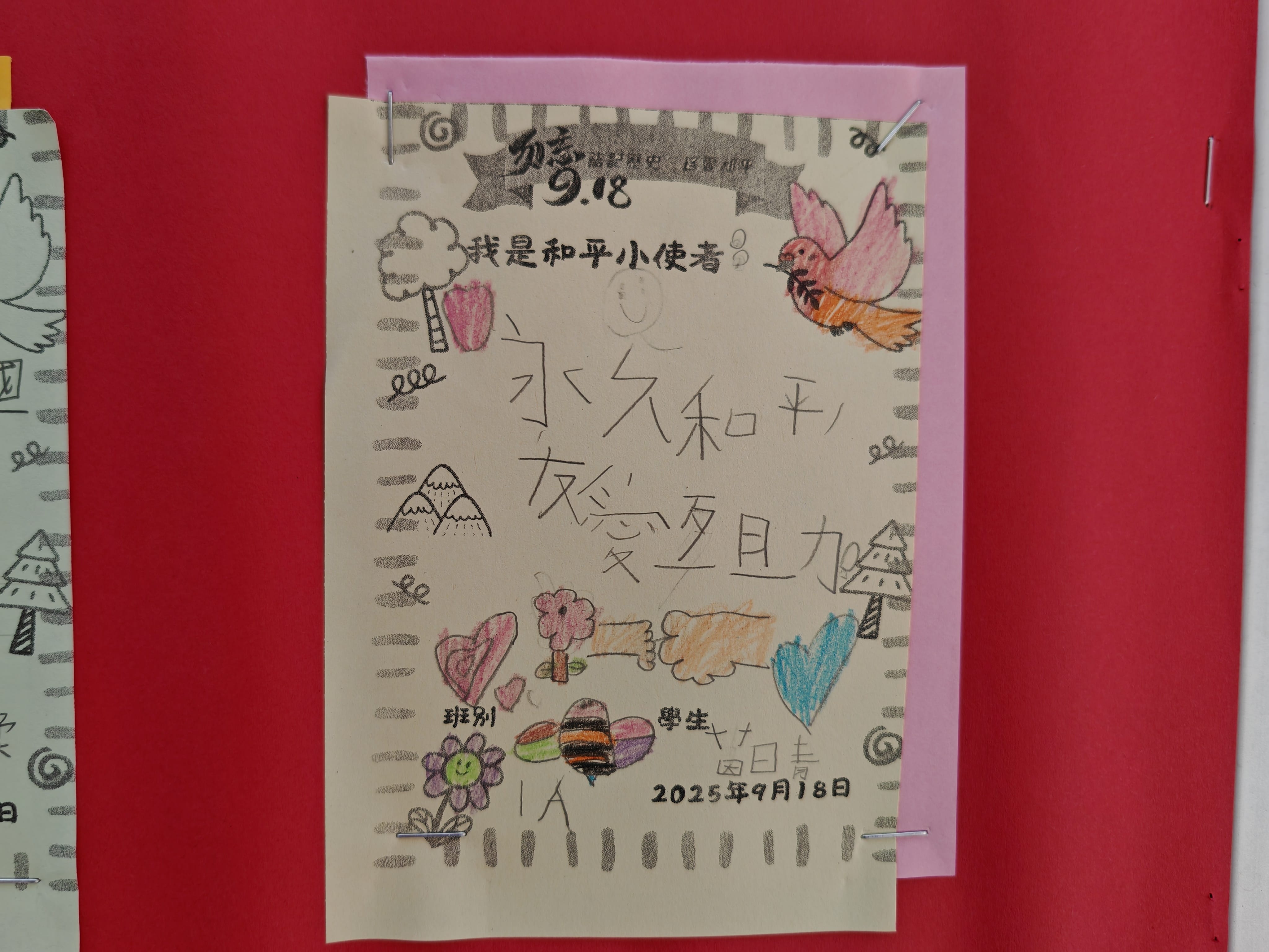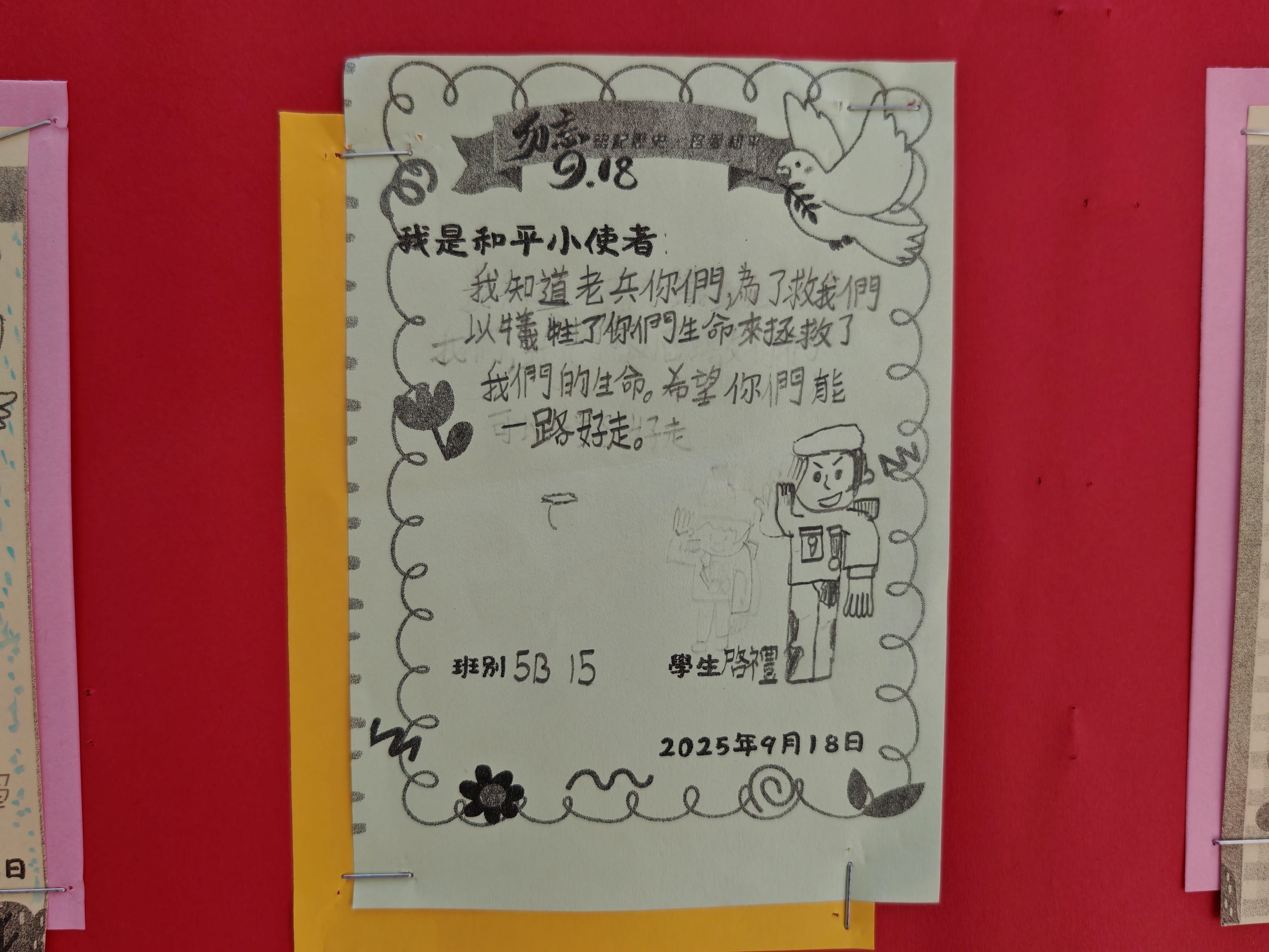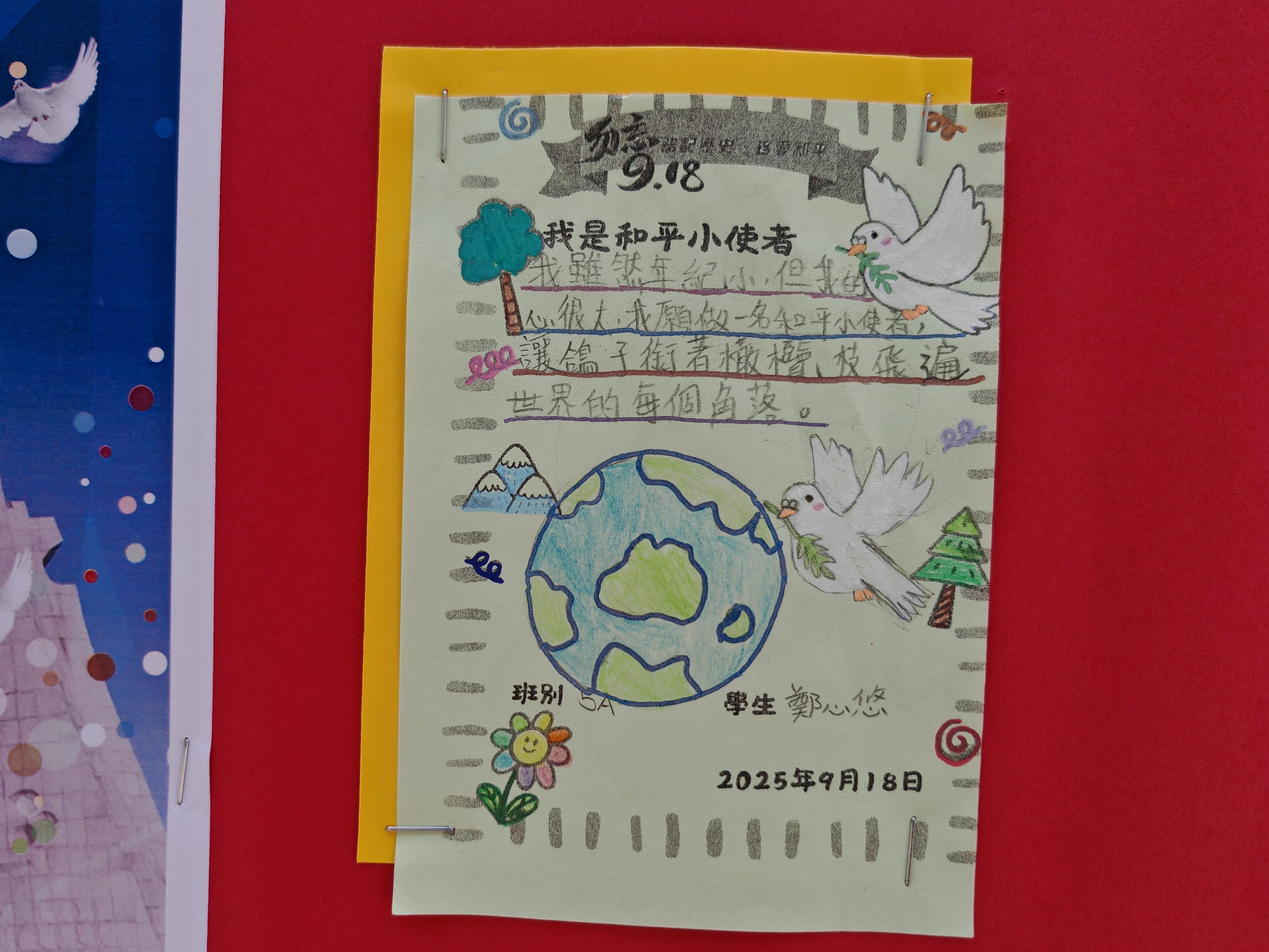 活動在莊嚴的升旗儀式中開始,師生肅立致敬。隨後由國民教育主任進行旗下講話,鼓勵同學以實際行動守護和平,並於默哀環節中緬懷歷史、尊重生命。下午更安排觀看歷史教育短片及製作「和平心願卡」,鼓勵學生爭做「和平小使者」。