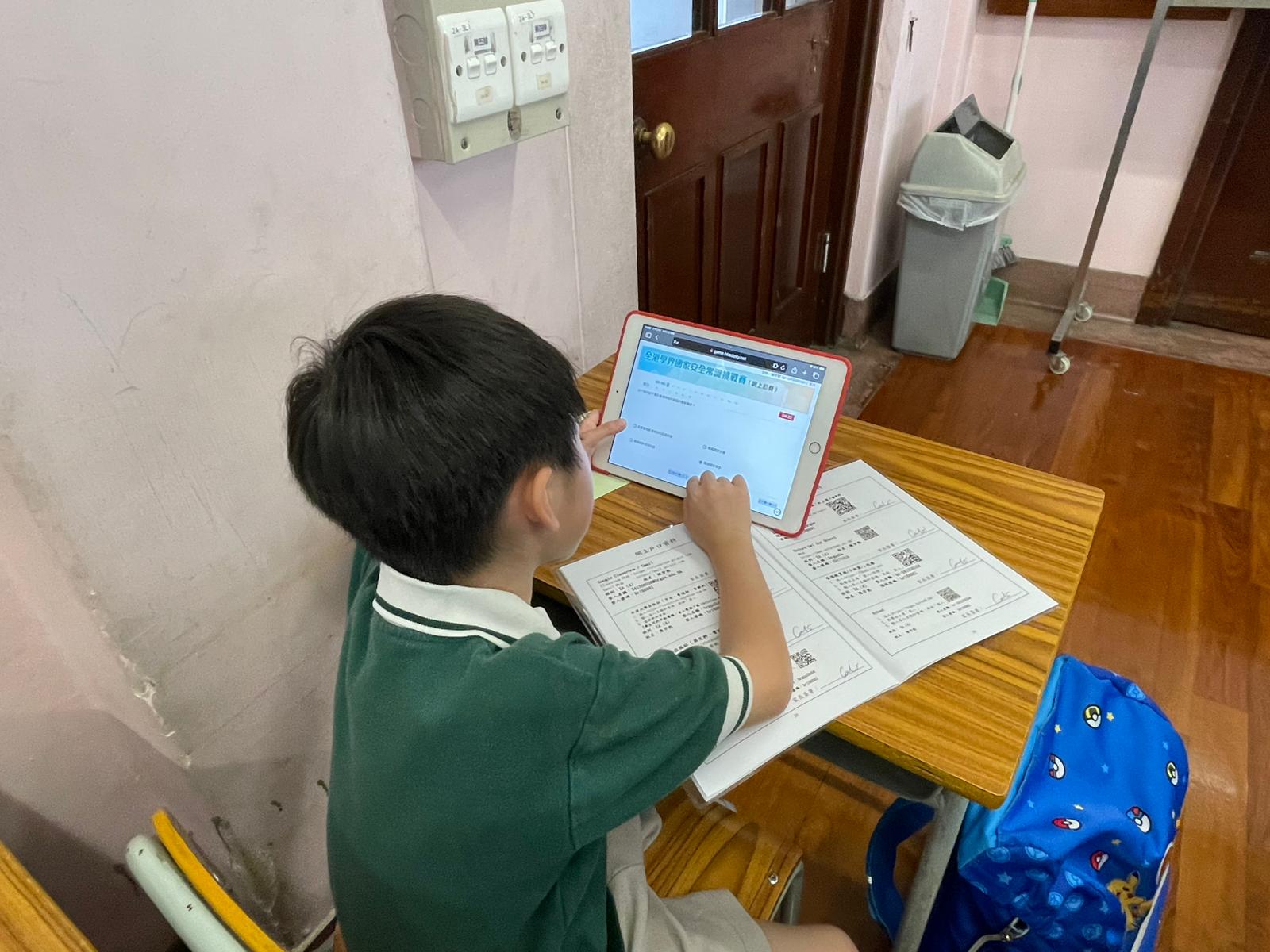 為進一步深化國家安全教育,全校將於上午及午間時段舉行常識挑戰賽網上初賽,由憲法大使協助同學使用平板電腦登入系統參與競賽。午間廣播時段,學生觀賞「風雨同舟護國安」、「香港修例風波真相」及「放眼祖國風光無限」三部主題短片,從中認識國家安全的「二十個重點領域」,並深入了解香港「由亂變治」的歷程與意義。