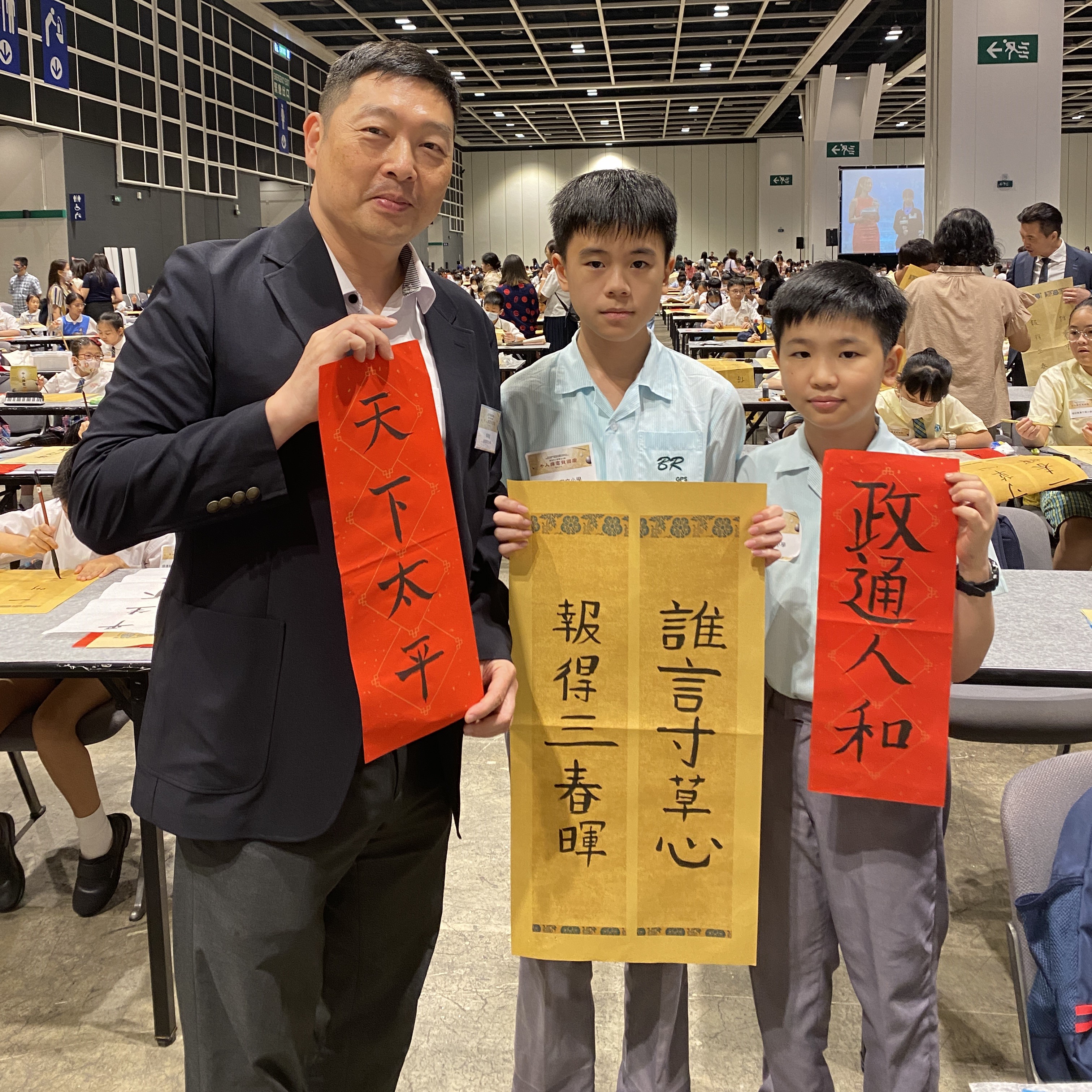 本校十位學生在李校長的帶領下,連同全港逾一千八百位學生一起參與「千人揮毫賀國慶—香港中小學書法活動」,在香港會議展覽中心即席揮毫,千筆共舞,氣勢非凡,場面壯觀。