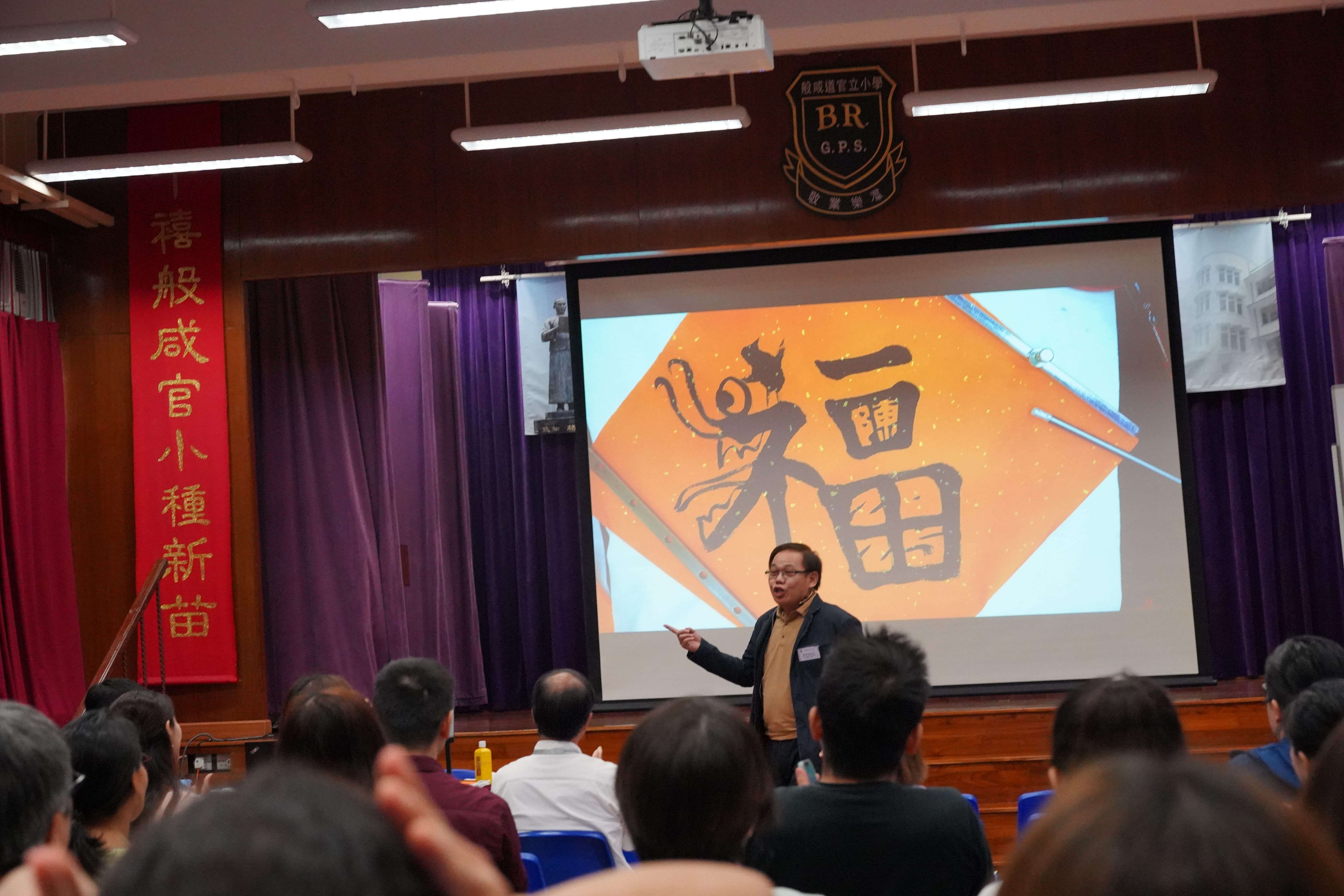 本校邀請了香港聯合國教科文組織協會項目顧問(書法)潘炳鴻老師為一年級家長及學生進行執筆講座,教導一、二年級的同學書寫硬筆書法。
