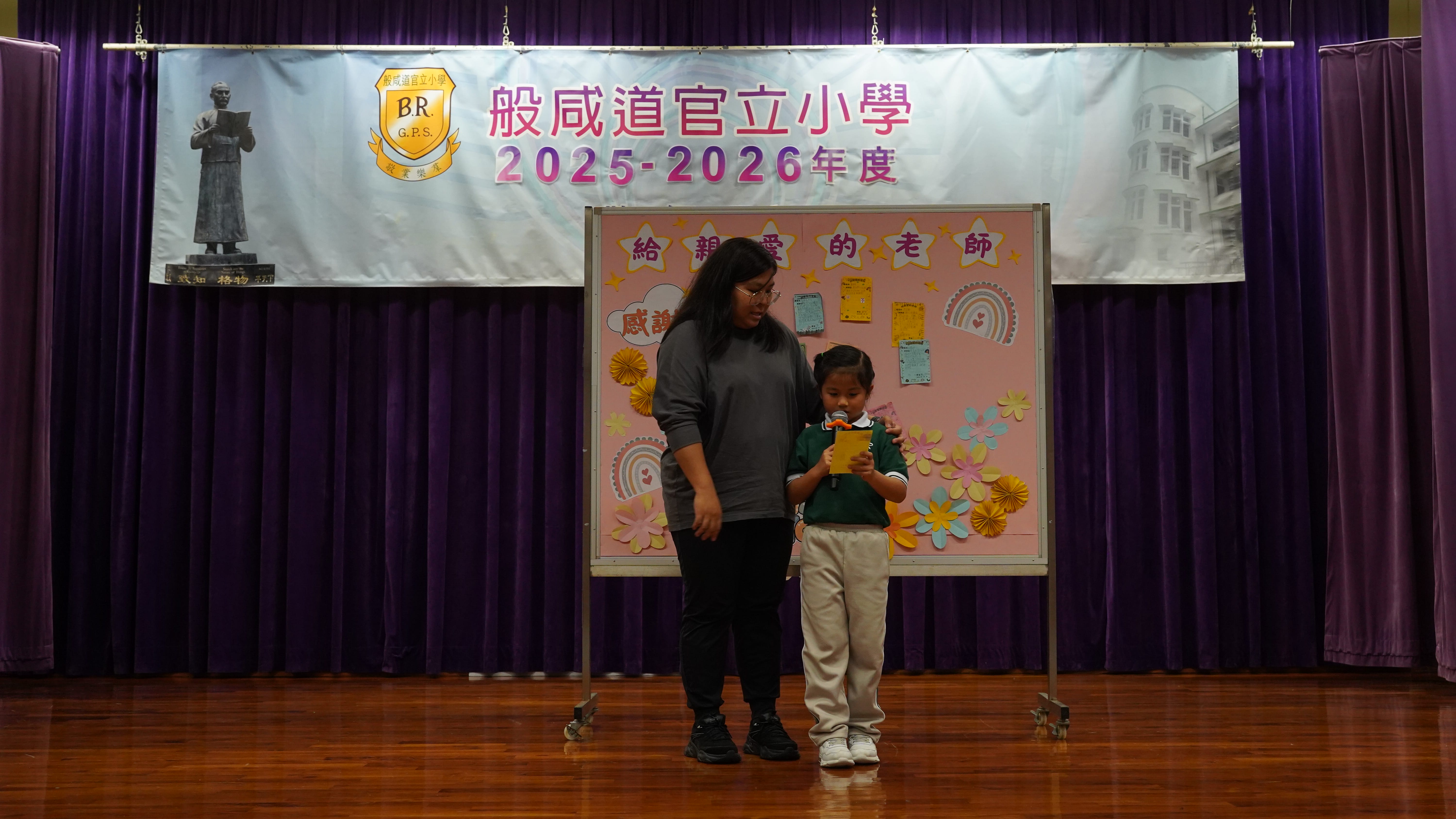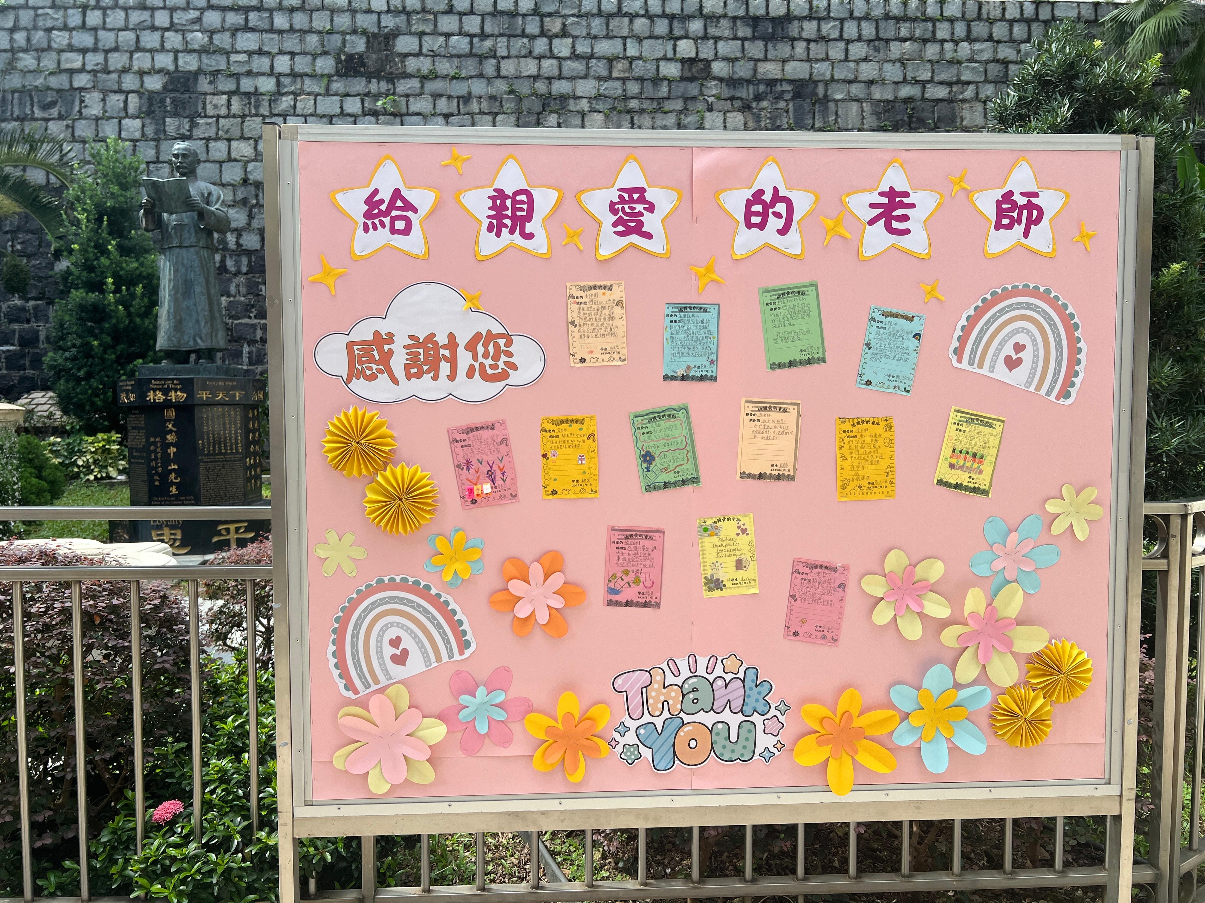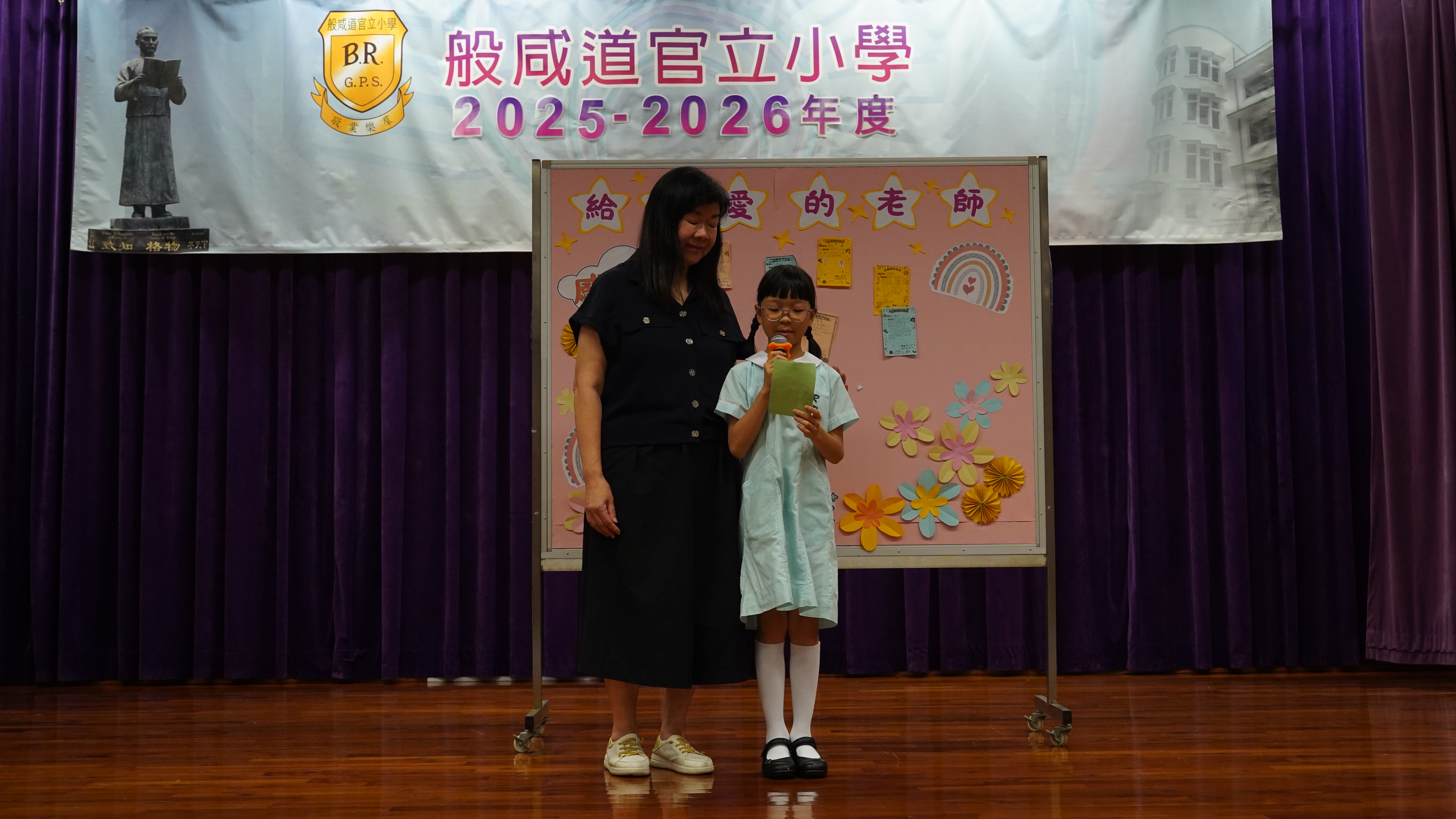 2025年9月10日為本校敬師日。當天早上,李校長在敬師活動中向學生致辭,勉勵學生們心懷感恩,繼續努力學習,不要辜負老師和家長的期望。每班學生代表在台上讀出感謝老師的說話及為老師送上敬師咭,家長代表更為本校老師送上果籃及感謝咭,最後全校一起進行大合唱「良師頌」,師生、家長共同度過了一個温馨又意義的敬師日。