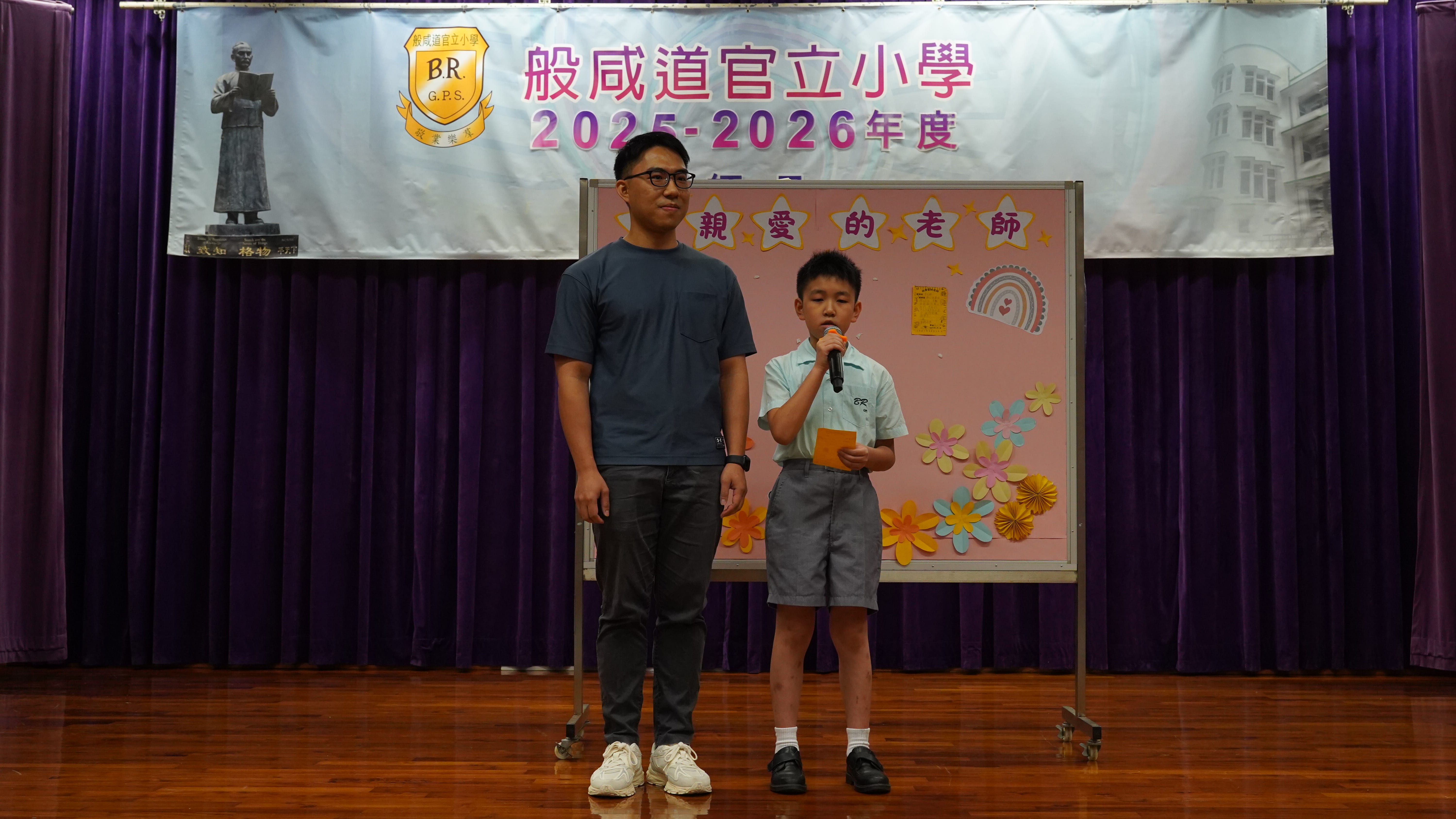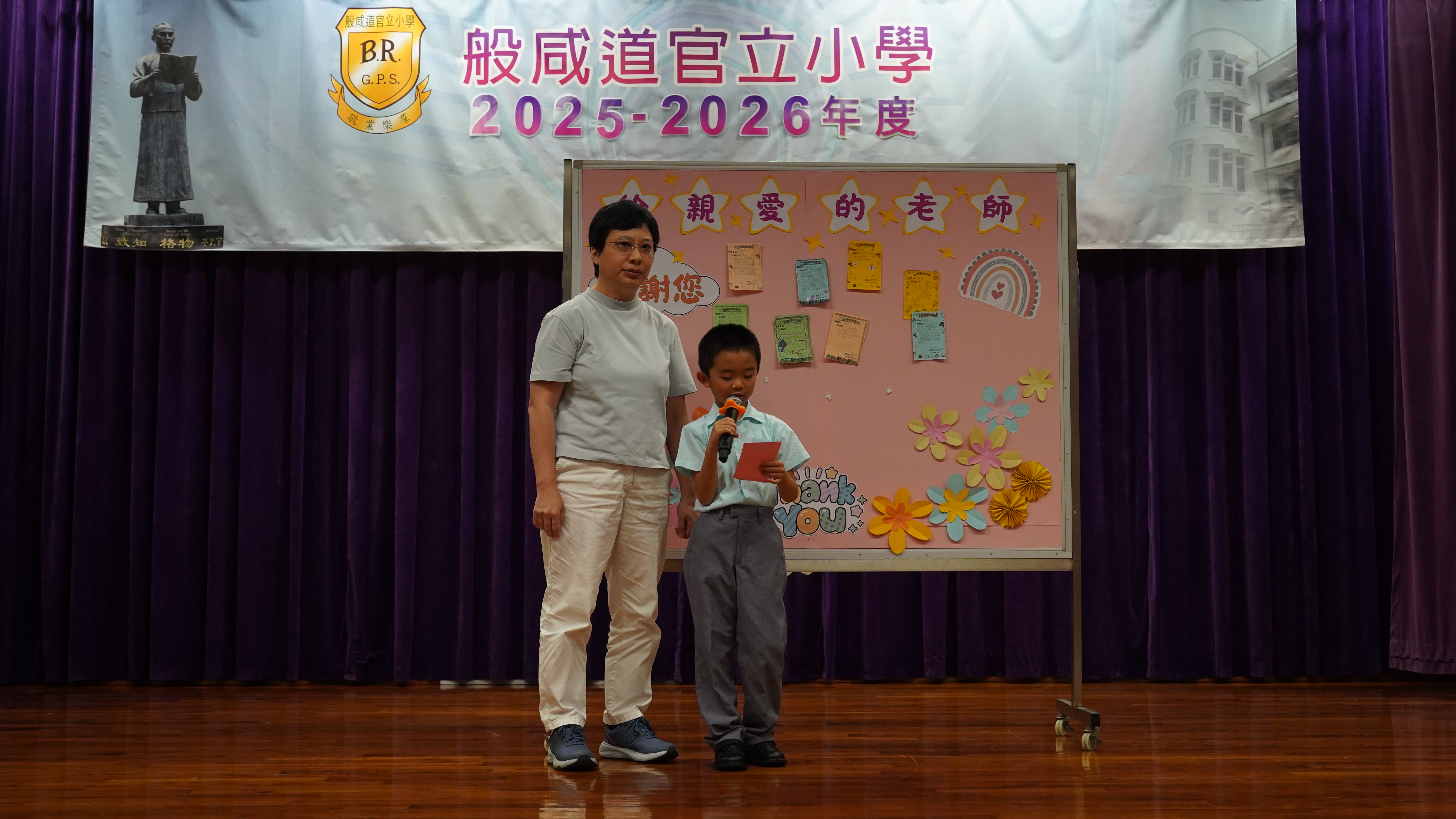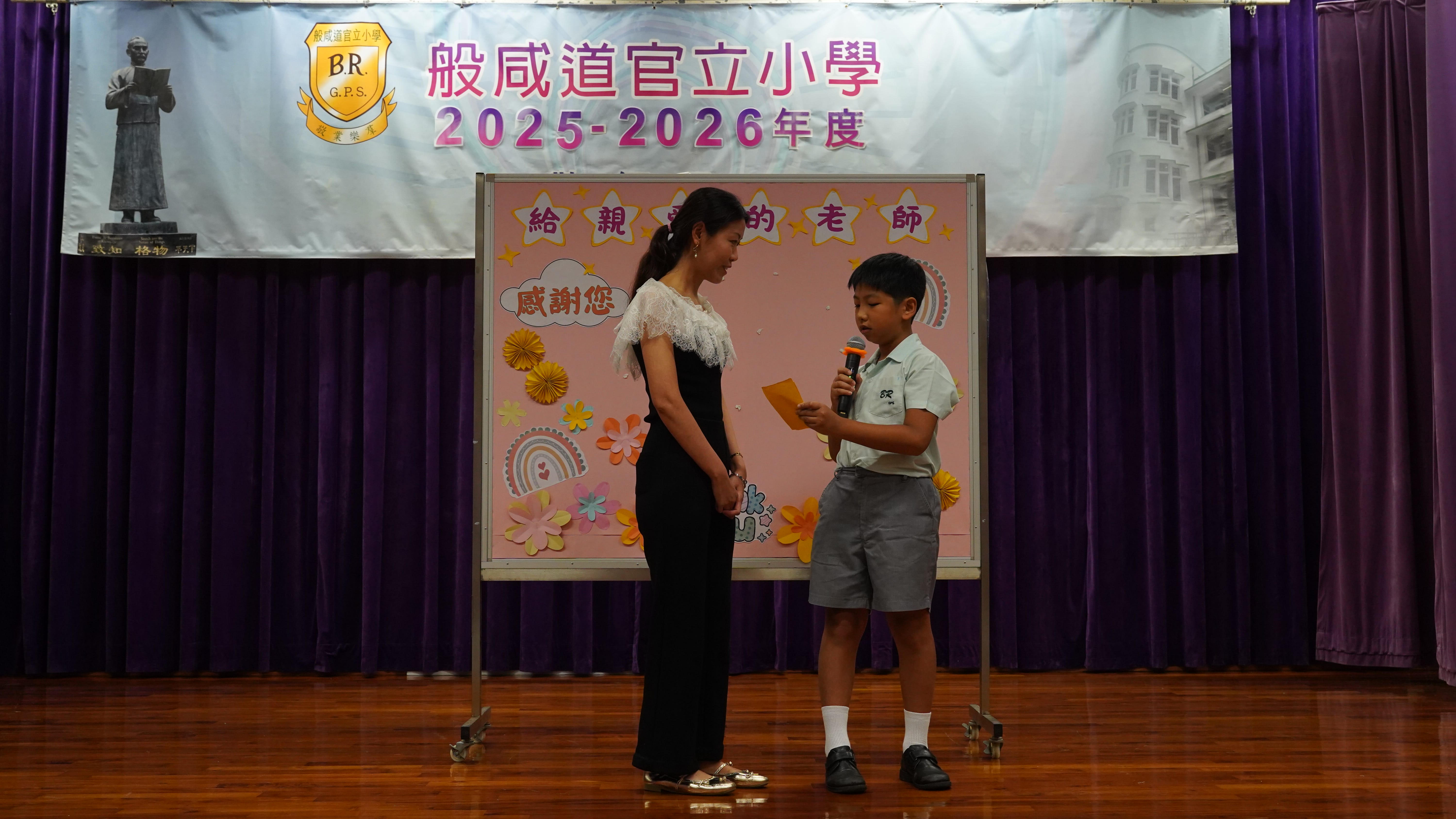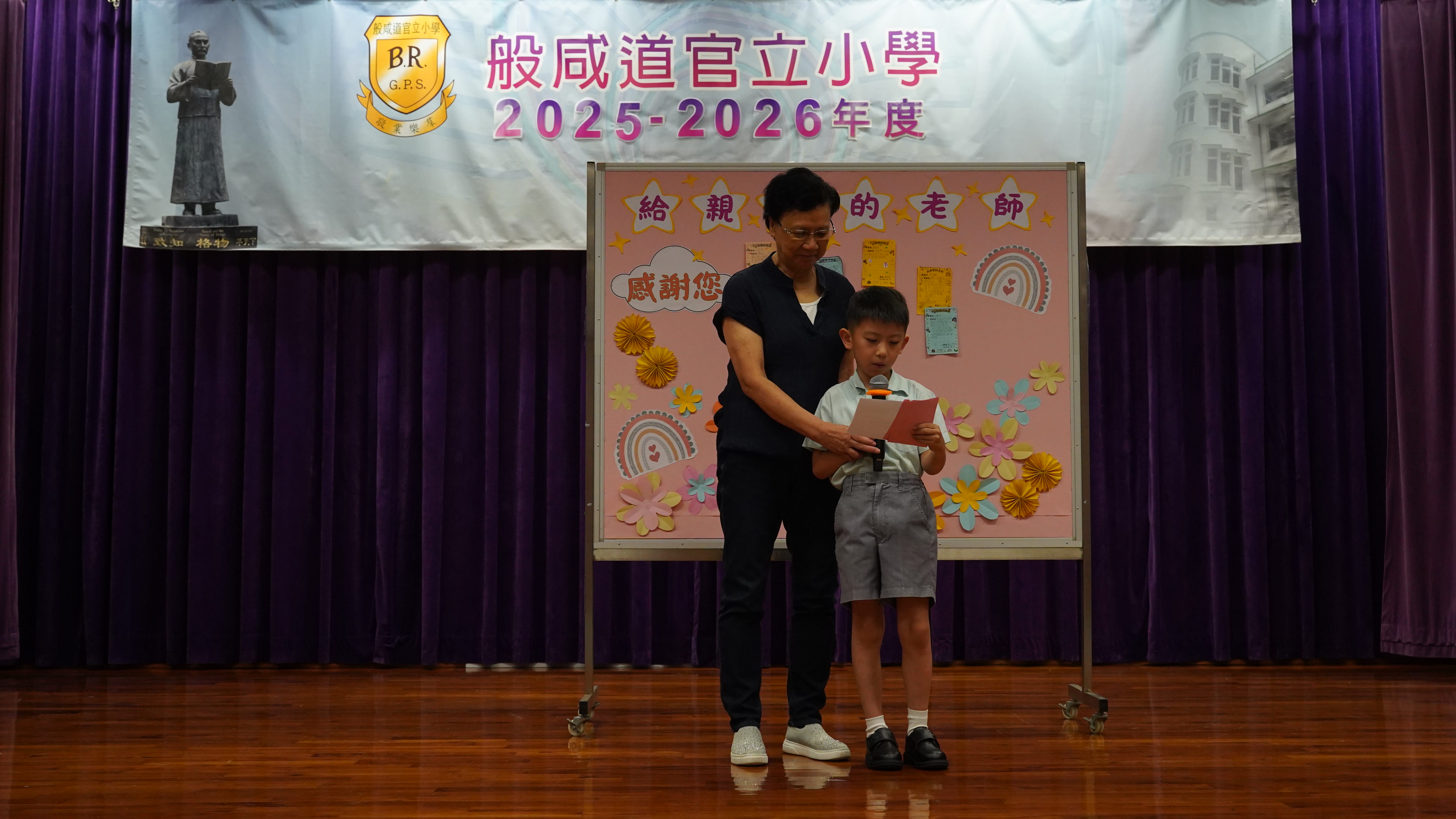 2025年9月10日為本校敬師日。當天早上,李校長在敬師活動中向學生致辭,勉勵學生們心懷感恩,繼續努力學習,不要辜負老師和家長的期望。每班學生代表在台上讀出感謝老師的說話及為老師送上敬師咭,家長代表更為本校老師送上果籃及感謝咭,最後全校一起進行大合唱「良師頌」,師生、家長共同度過了一個温馨又意義的敬師日。