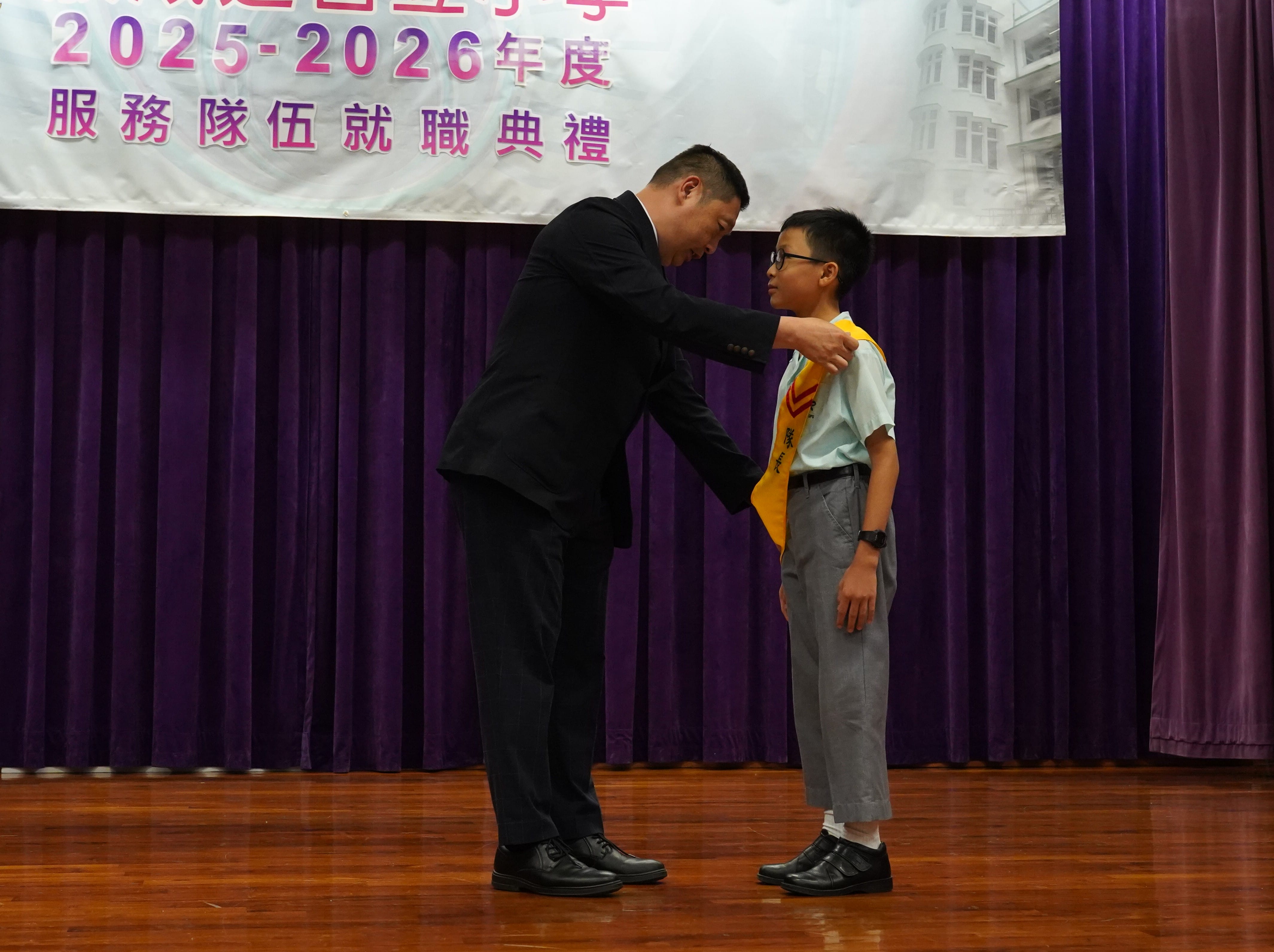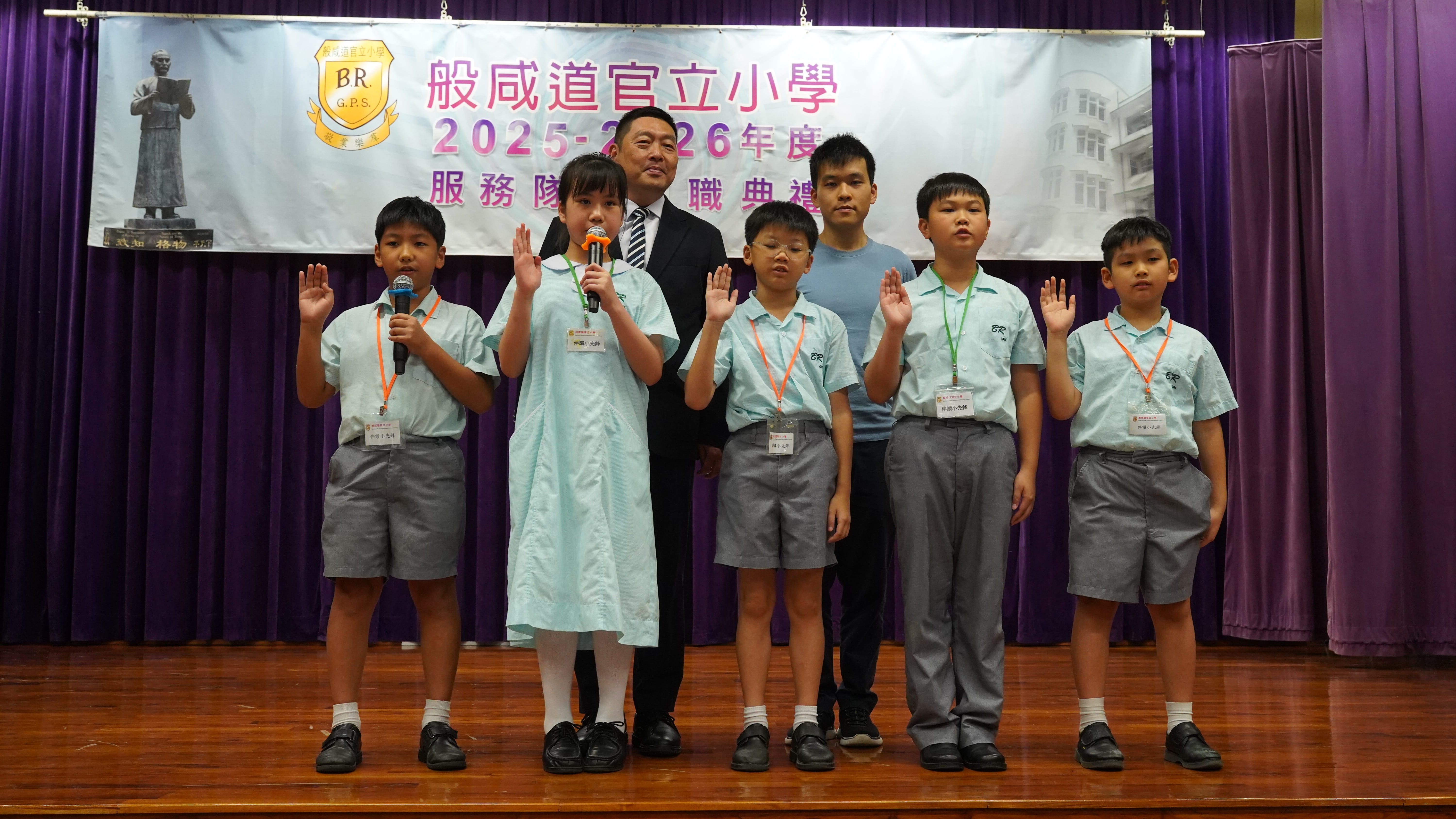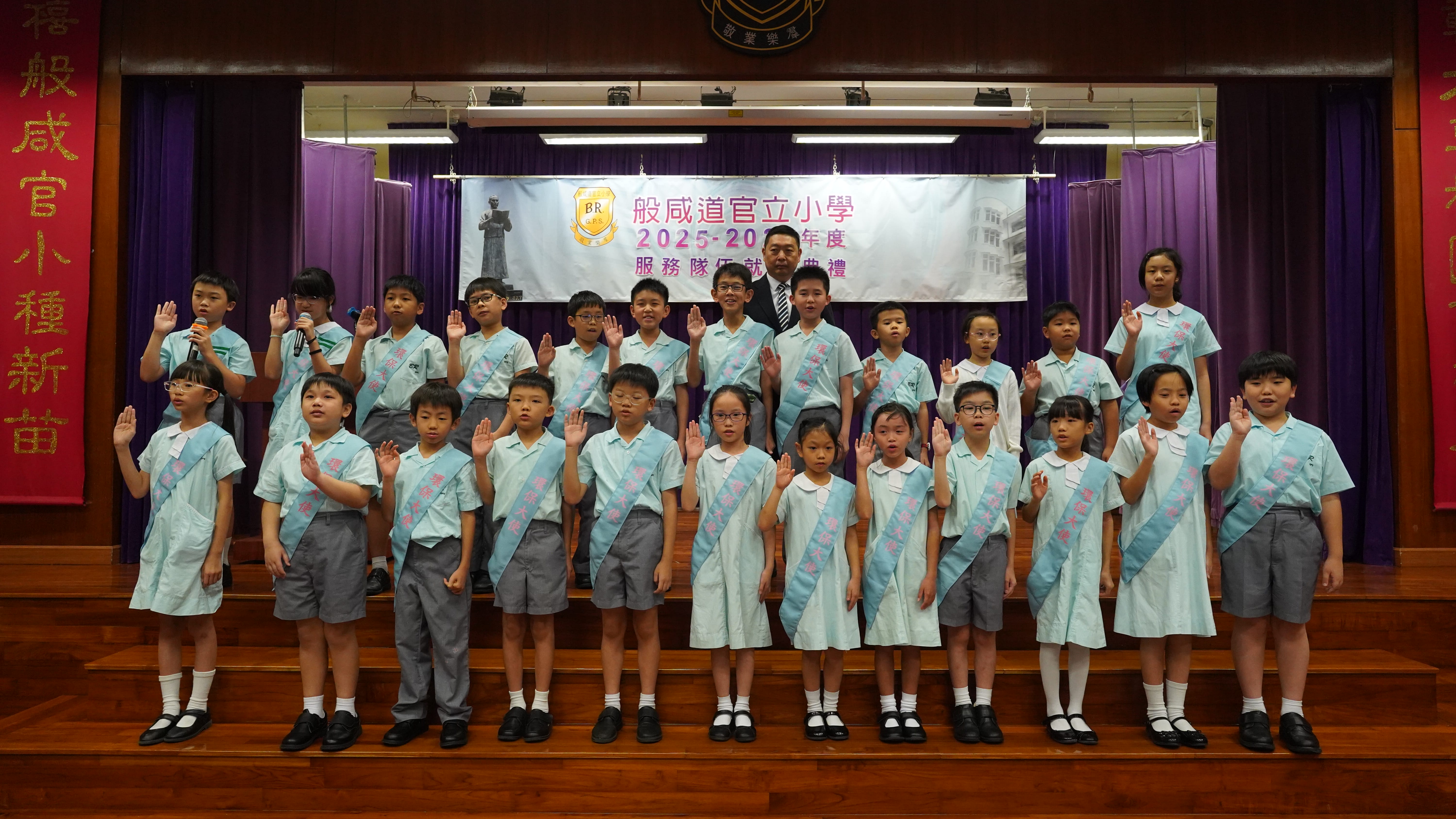 本校於今天下午在禮堂舉行了服務隊伍就職典禮,旨在表彰學生的服務精神,並鼓勵他們積極參與校內外活動,從中培養堅毅、責任感及領導能力。典禮上,校長致辭時讚揚各服務隊伍成員在過去一年中的努力與付出,並寄語新一屆隊員繼續秉持「服務他人,成就自我」的精神,在不同崗位上發揮所長,為學校作出貢獻,各服務隊伍全體隊員在典禮上進行宣誓儀式,象徵著他們正式肩負起服務的責任,邁向新一階段的學習旅程,讓學生在服務中學習,在實踐中成長,進一步鞏固了學校推動全人教育的理念。