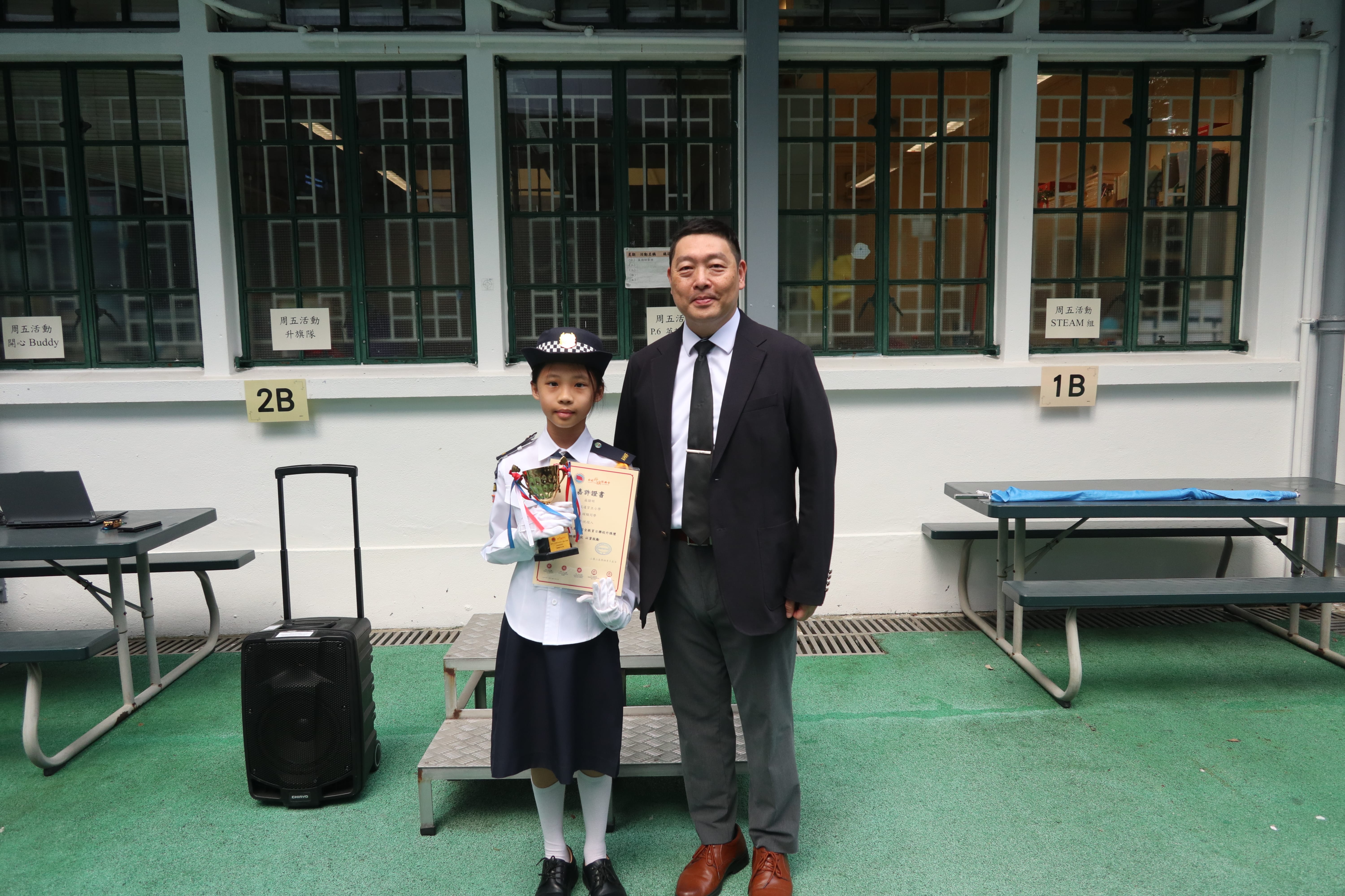 9月11日恒常升旗禮上,5A班李琛頤同學榮獲升旗總會頒發「熱衷投入2025全民國家安全教育日聯校升旗禮」證書及獎杯,表彰其對國家儀式的積極參與與卓越表現。此次頒獎不僅肯定李同學的個人投入,更樹立榜樣,激勵全體般官學生積極參與國家安全教育,深化對國民身分的認同與責任感,強化愛國情懷。