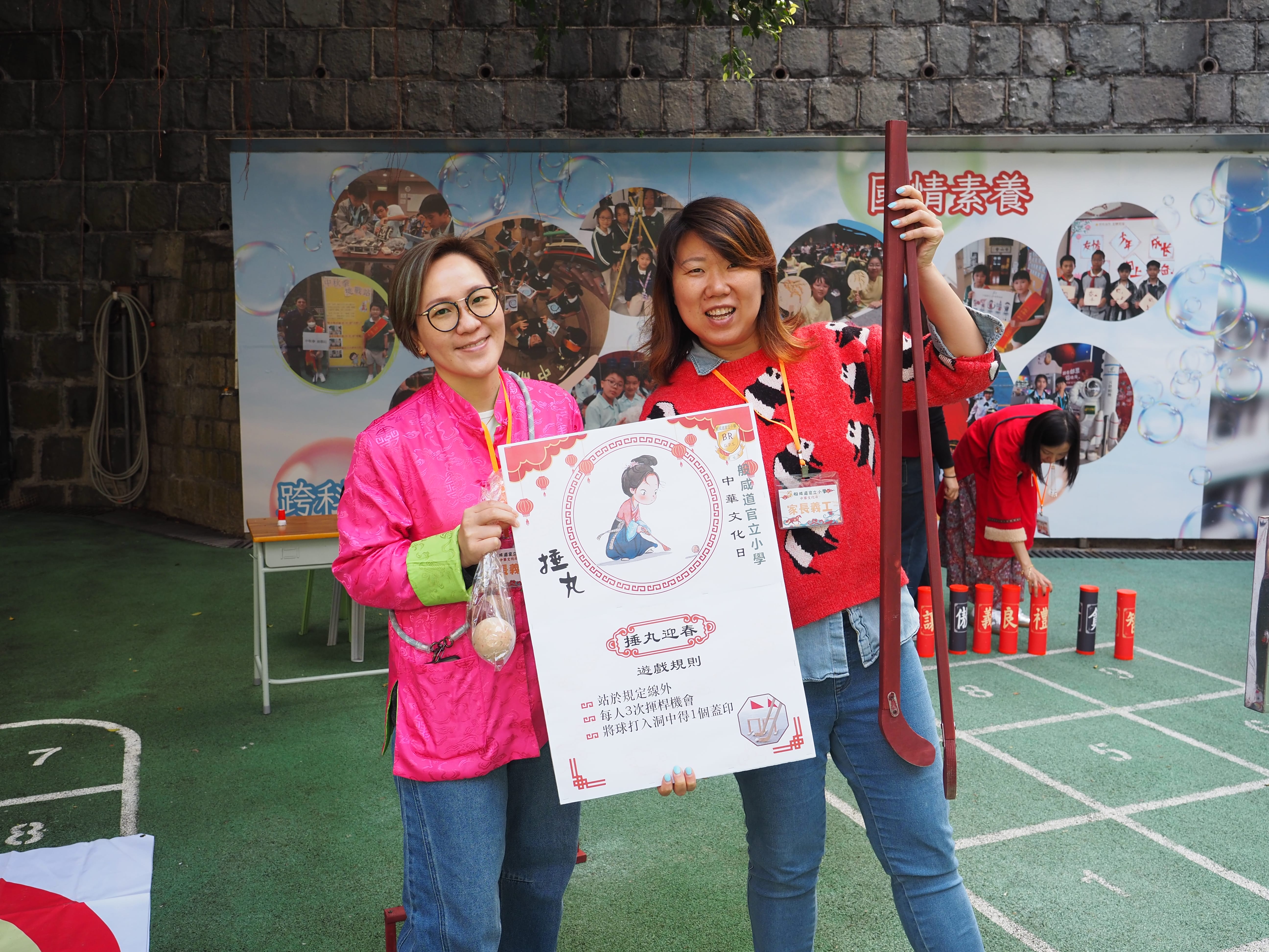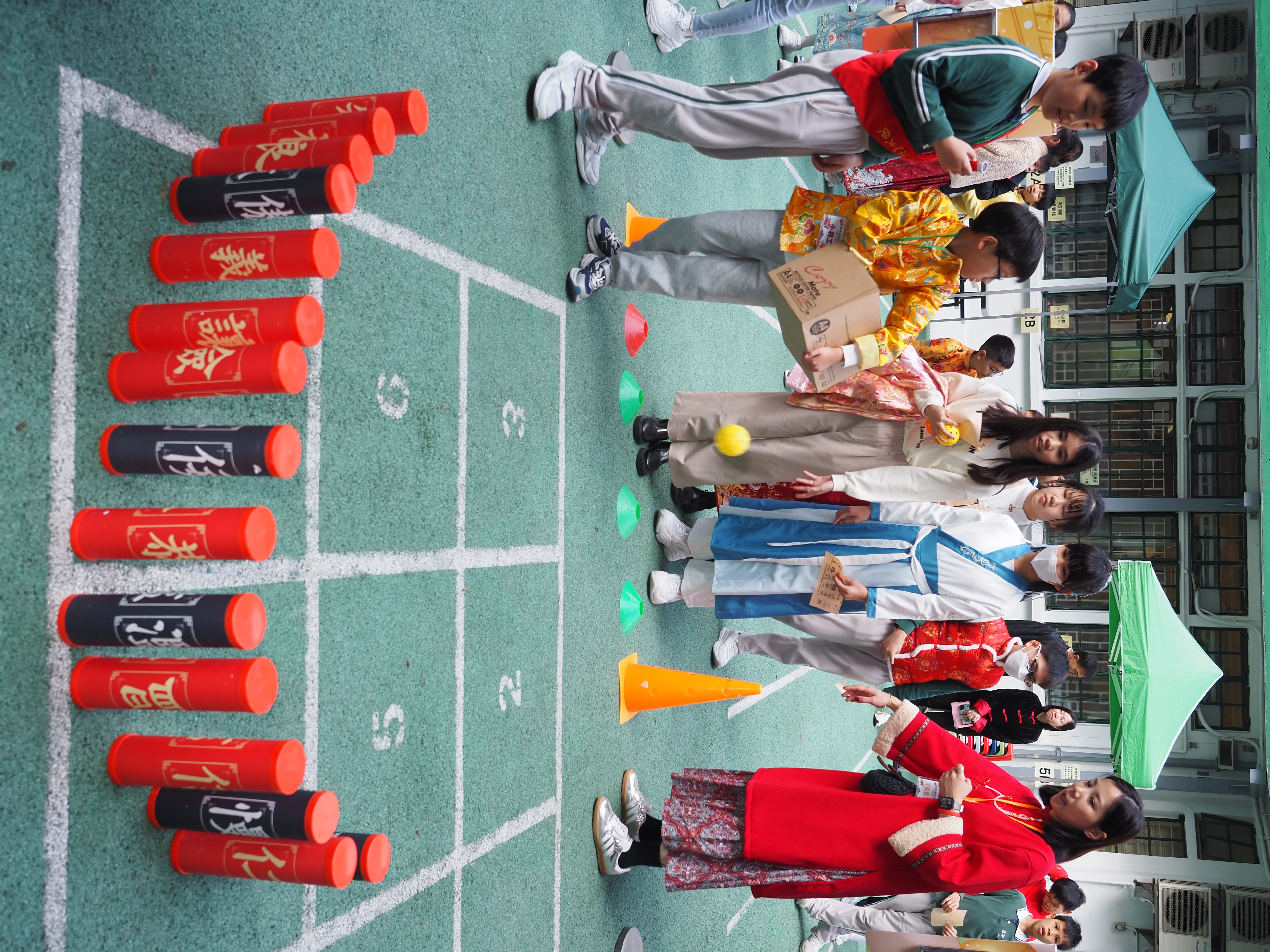 在家長義工與憲法及基本法大使的熱心協助下,同學們踴躍參與各項傳統遊戲:體驗古代高爾夫「捶丸」、認識寓教於樂的「木射」,以釣鉗夾取馬匹玩偶等。同學們在遊戲中認識中國歷史與傳統體育文化,完成任務可收集印章,儲齊印章即可參加扭蛋抽獎,有機會贏取豐富大獎,現場歡笑不斷、樂趣滿滿。