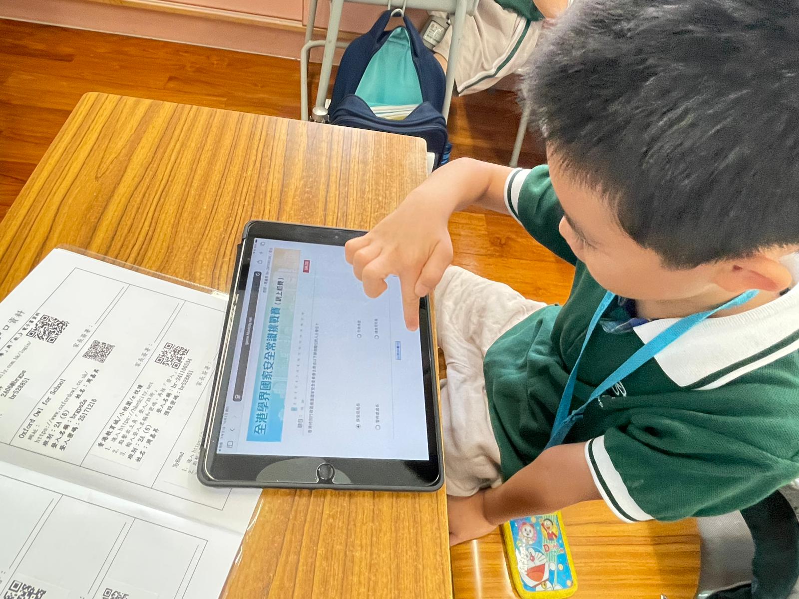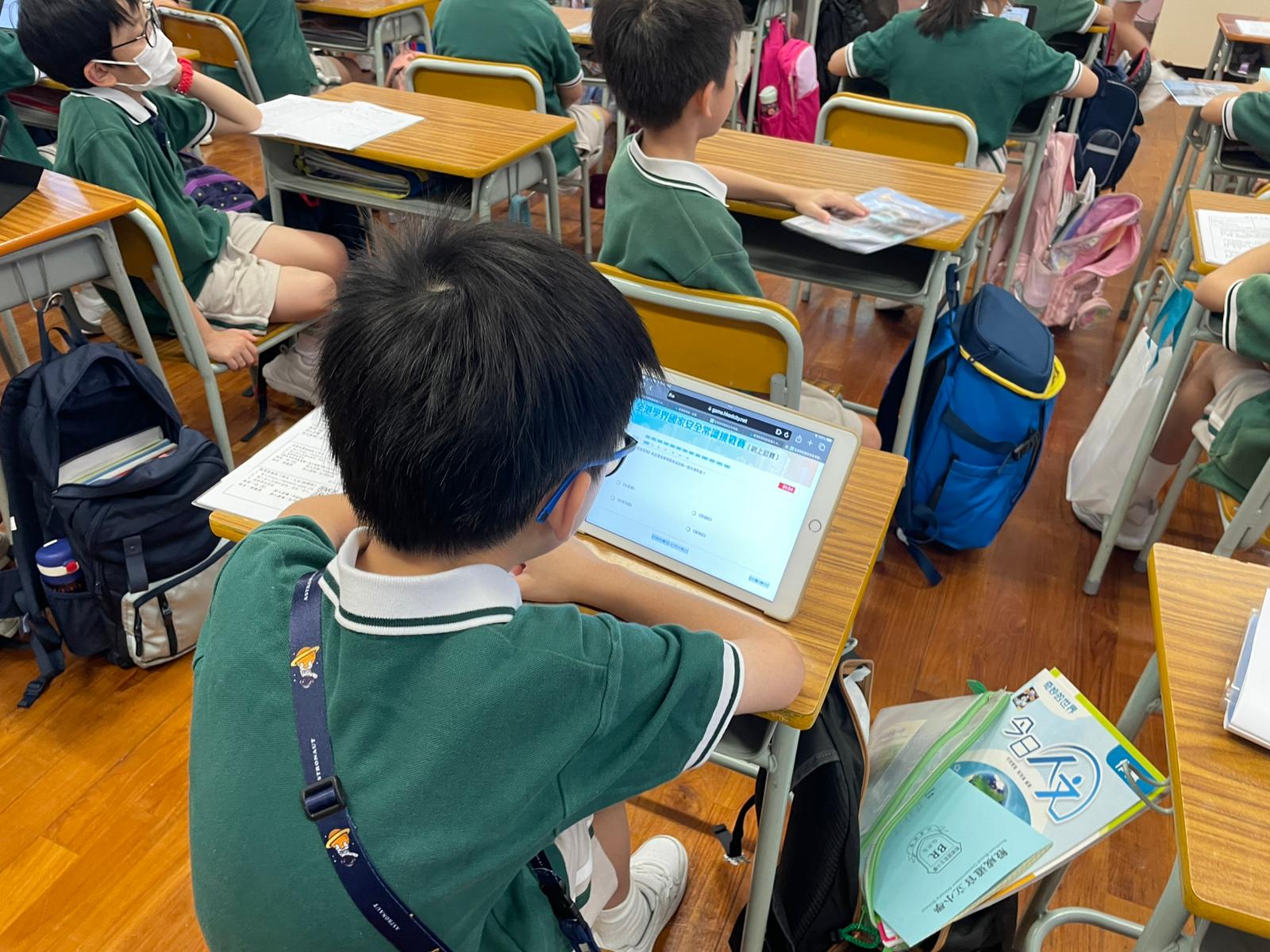 為進一步深化國家安全教育,全校將於上午及午間時段舉行常識挑戰賽網上初賽,由憲法大使協助同學使用平板電腦登入系統參與競賽。午間廣播時段,學生觀賞「風雨同舟護國安」、「香港修例風波真相」及「放眼祖國風光無限」三部主題短片,從中認識國家安全的「二十個重點領域」,並深入了解香港「由亂變治」的歷程與意義。