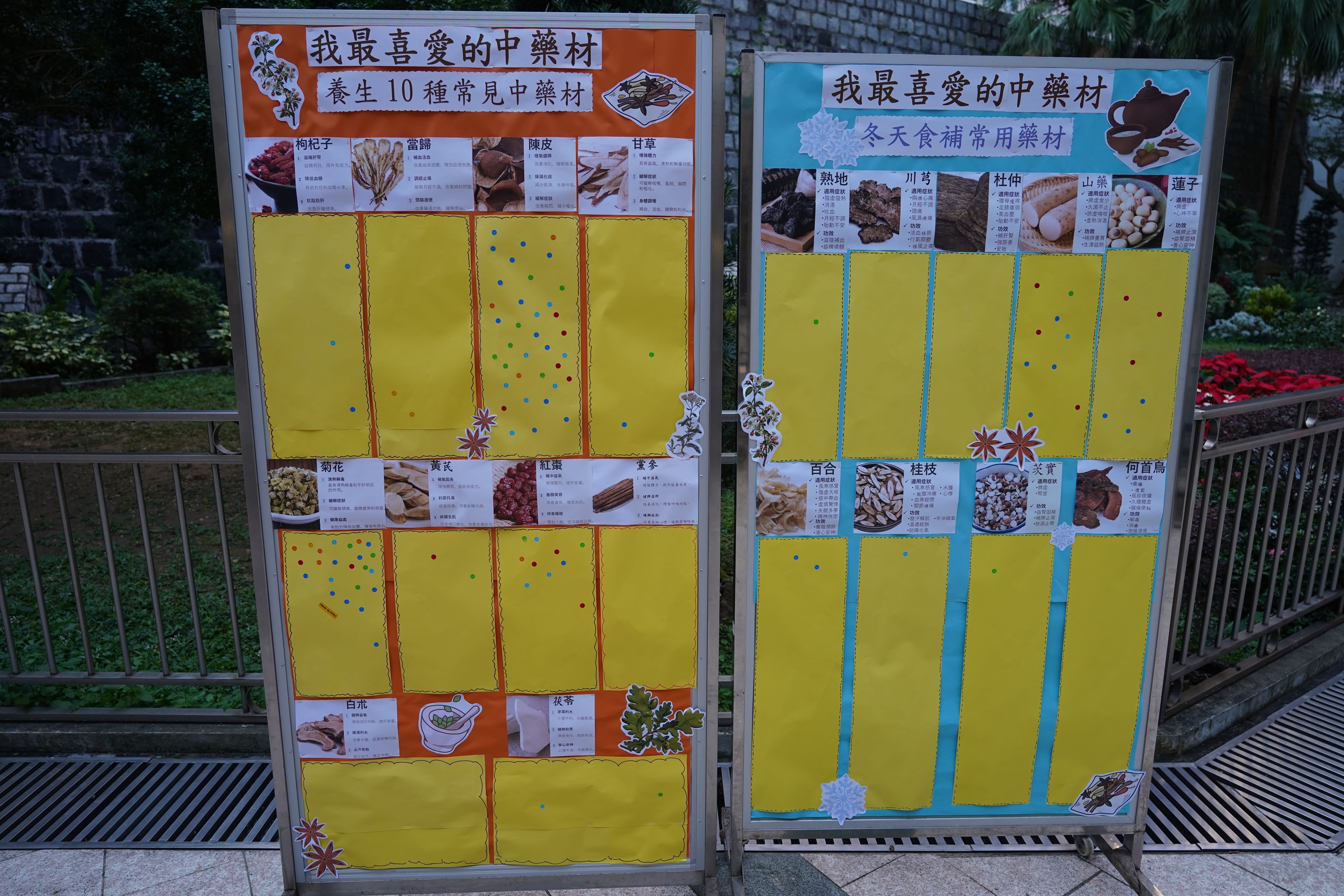 為了配合學校中草藥園的設立,以及五年級中文科單元主題「仁心濟世」,中文科於11月舉行了一連串跨學科活動,而其中就有一個展示中草藥的活動,讓學生認識各種中草藥的名稱及功效。