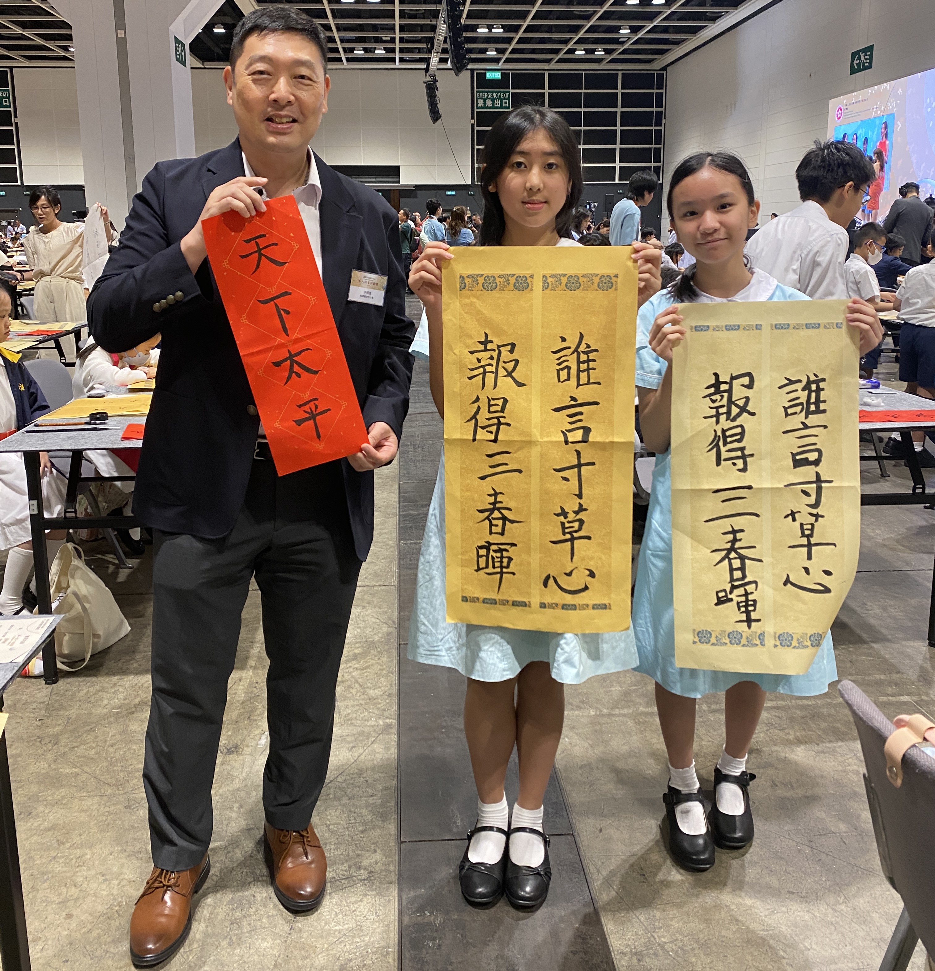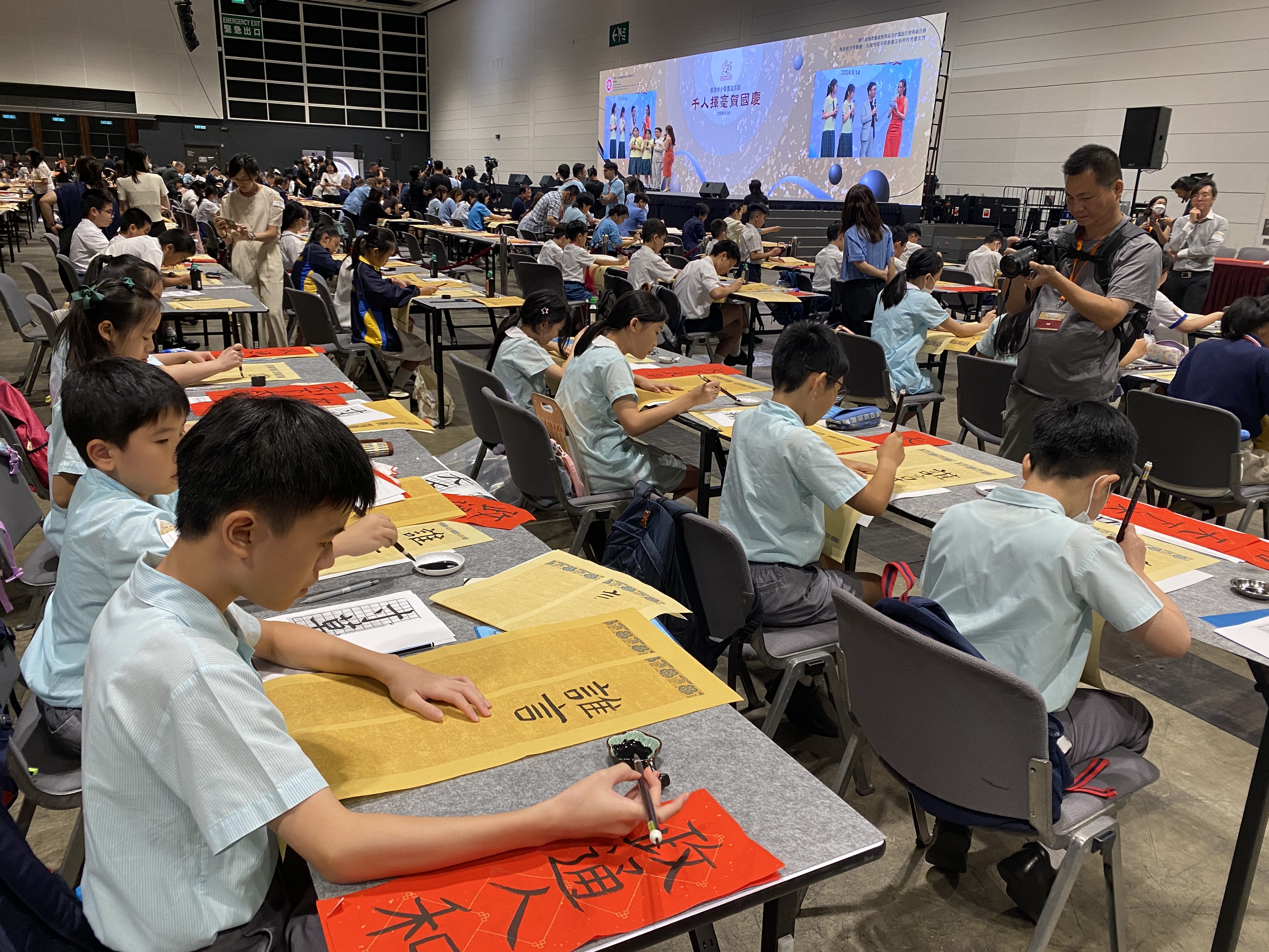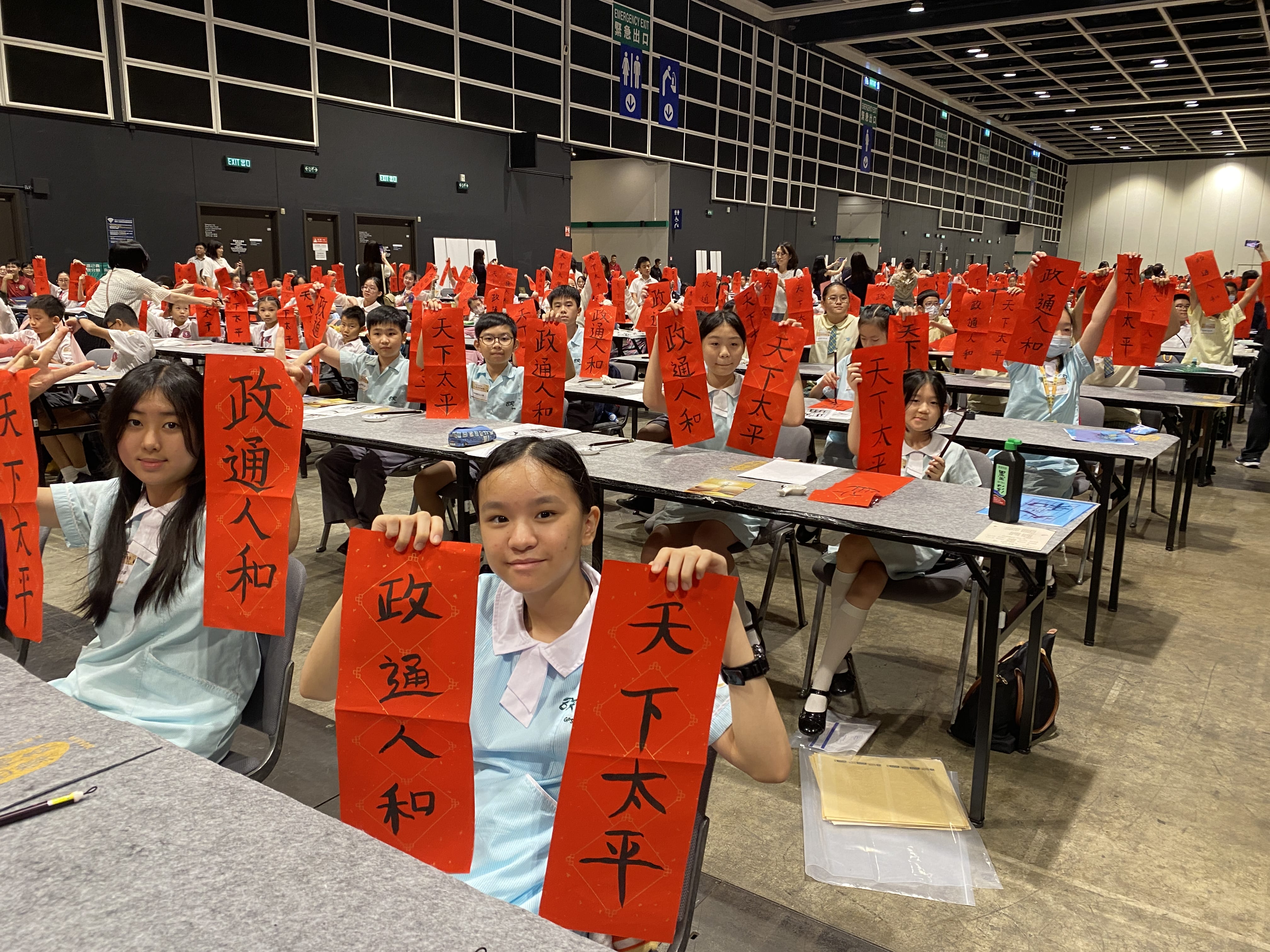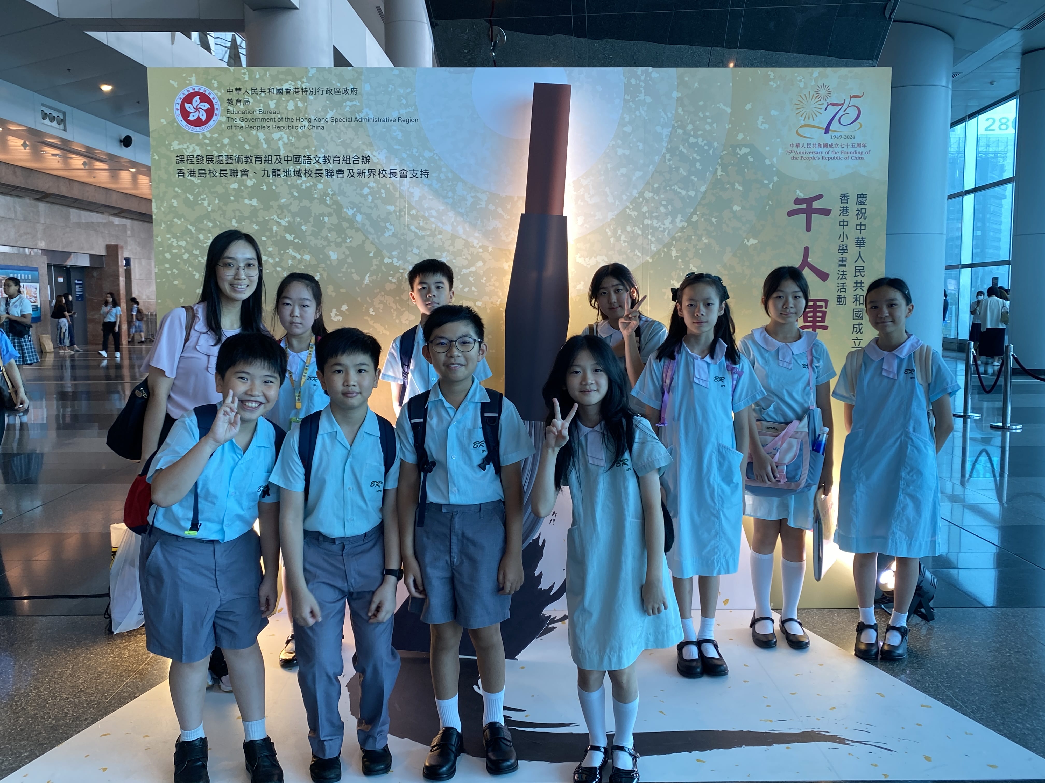 本校十位學生在李校長的帶領下,連同全港逾一千八百位學生一起參與「千人揮毫賀國慶—香港中小學書法活動」,在香港會議展覽中心即席揮毫,千筆共舞,氣勢非凡,場面壯觀。