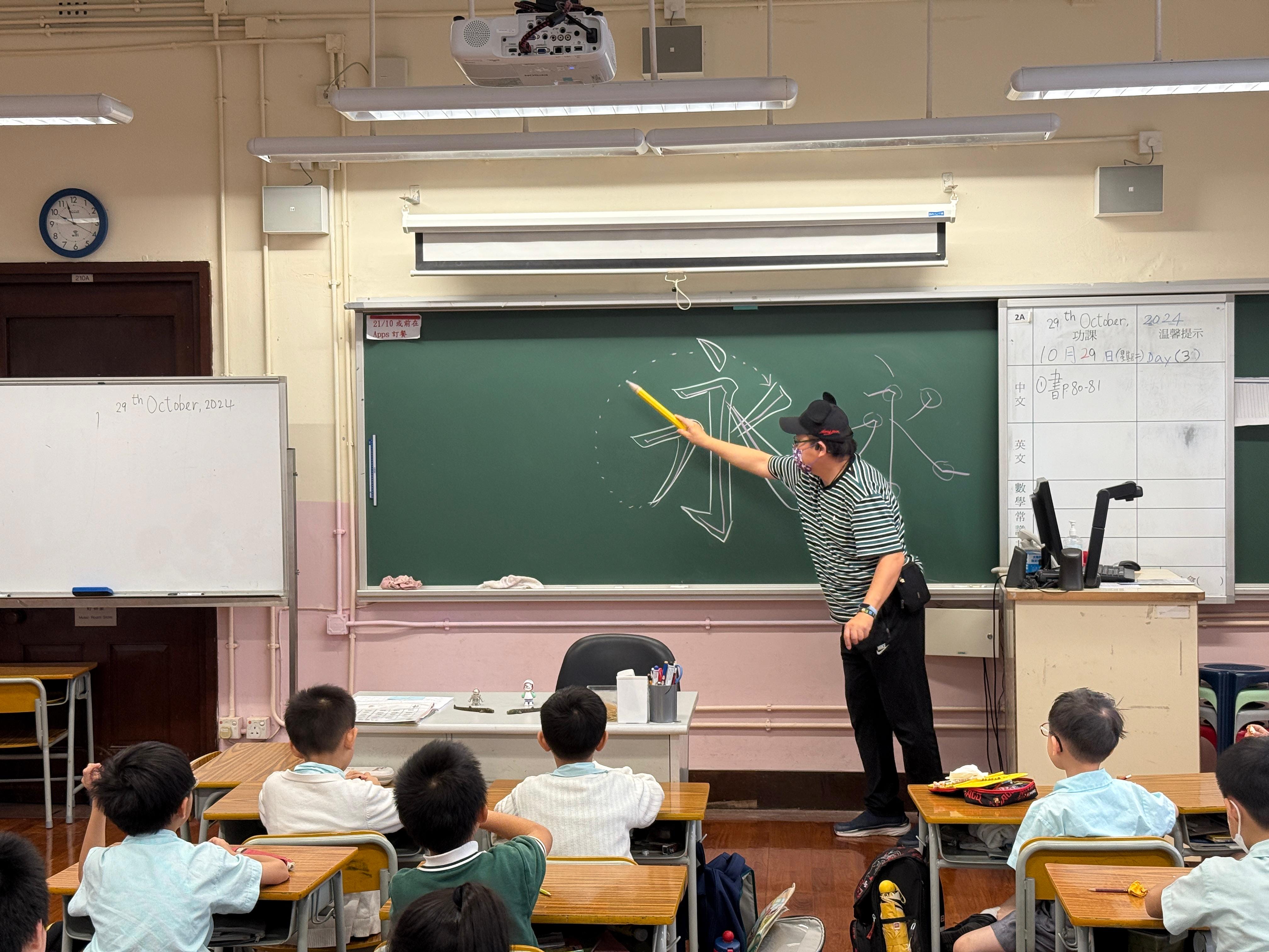 本校邀請了香港聯合國教科文組織協會項目顧問(書法)潘炳鴻老師為一年級家長及學生進行執筆講座,教導一、二年級的同學書寫硬筆書法。